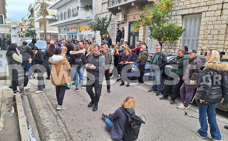 Πλήθος κόσμου έξω από το αστυνομικό τμήμα Μεσολογγίου