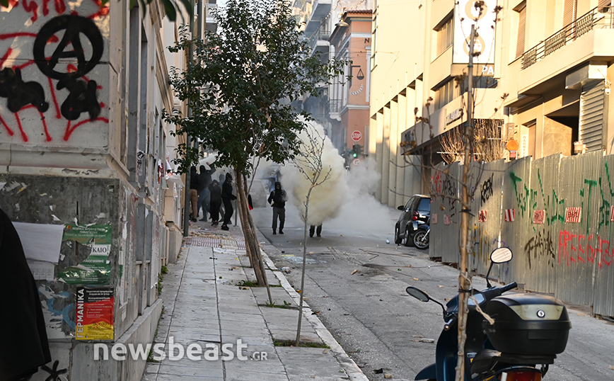 Επεισόδια ξέσπασαν στην οδό Σίνα, από το ύψος της Ακαδημίας μέχρι το ύψος της Σόλωνος λίγο πιο μακριά από τη Νομική Σχολή όπου οι φοιτητές πραγματοποιούν συντονιστικό για τη συνέχιση των κινητοποιήσεών τους ενάντια στην ίδρυση ιδιωτικών πανεπιστημίων.