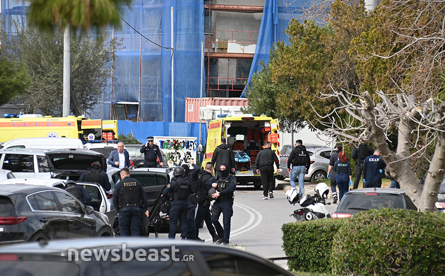 Προηγήθηκε η επιχείρηση της αστυνομίας στη ναυτιλιακή εταιρεία στη Γλυφάδα, στη συμβολή των οδών Αρτεμισίου και Φλέμινγκ, για τη σύλληψη του δράστη που εισέβαλε οπλισμένος το πρωί στο κτίριο πυροβολώντας.