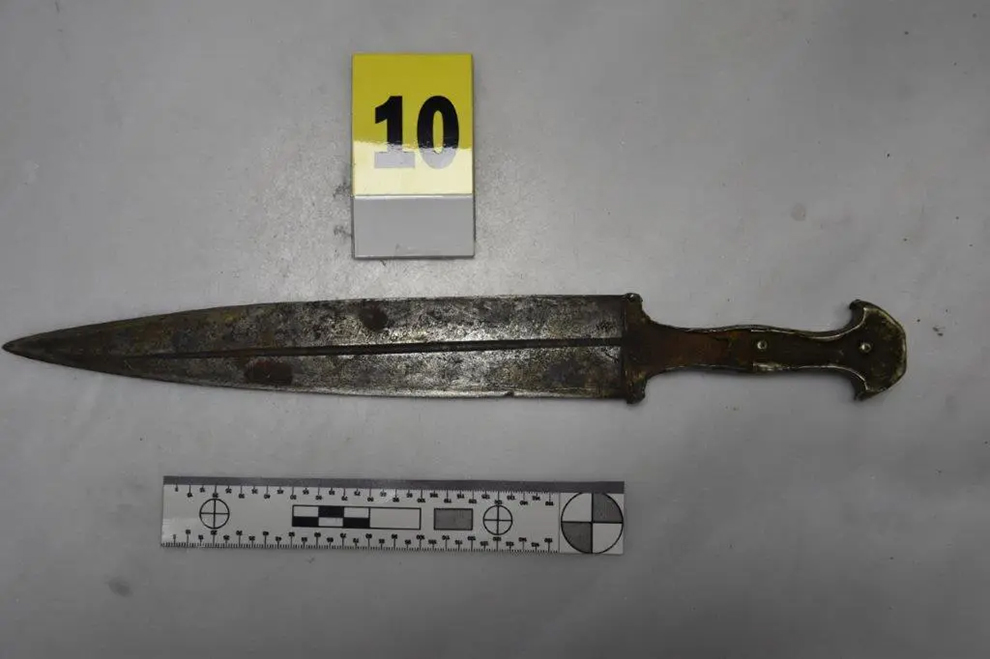 - σιδερένιο εγχειρίδιο νεώτερων χρόνων από 1500 μ.Χ. και μετά. Οι δακτύλιοι, οι περόνες και τα ελάσματα και το πήλινο πτηνό, εκτιμάται ότι αποτελούν κτερίσματα μιας γυναικείας ταφής.