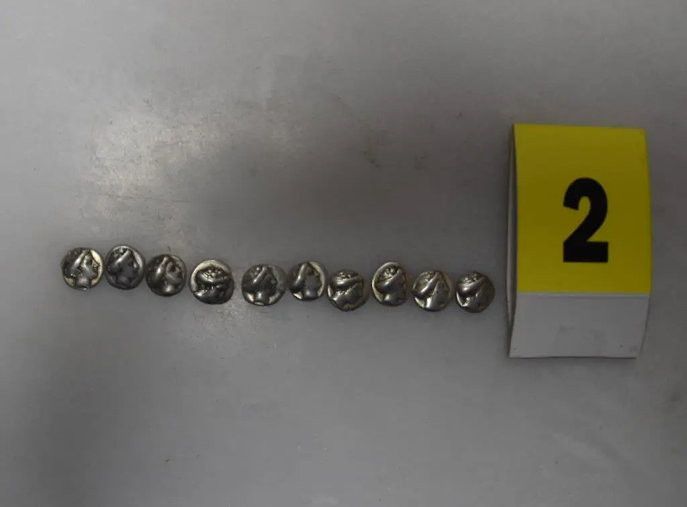 Το tμήμα Πολιτιστικής Κληρονομιάς και Αρχαιοτήτων της yποδιεύθυνσης Προστασίας Περιουσιακών Δικαιωμάτων, Πολιτιστικής Κληρονομιάς και Περιβάλλοντος εντόπισε και κατέσχεσε 38 νομίσματα ενιαίου «θησαυρού» και 9 αρχαία αντικείμενα, αποτρέποντας συνάντηση αγοραπωλησίας που είχε προγραμματιστεί σε αγροτεμάχιο πλησίον επαρχιακής οδού στην περιοχή της Εύβοιας.
