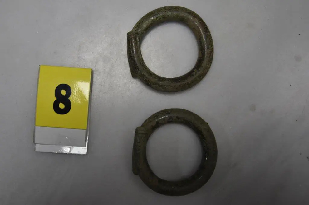 - δύο αρχαίοι μπρούτζινοι δακτύλιοι, είτε πρόκειται για δαχτυλίδια, είτε για στερέωση των βοστρύχων