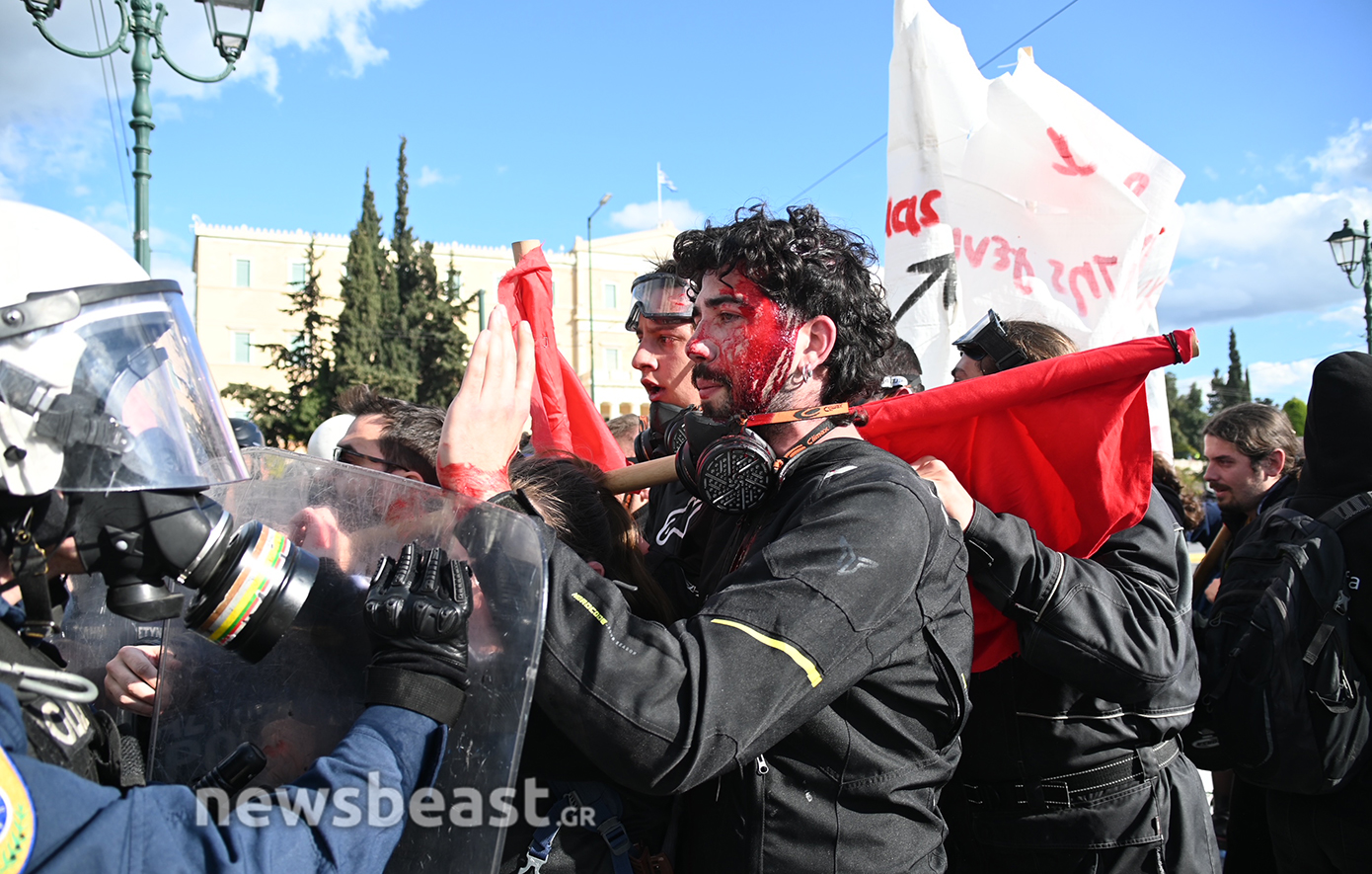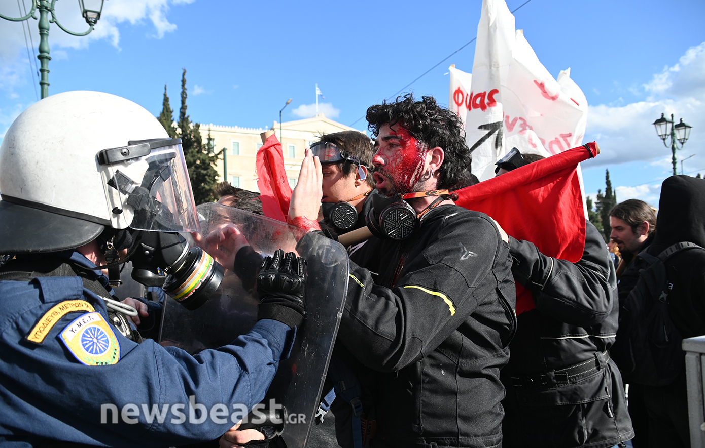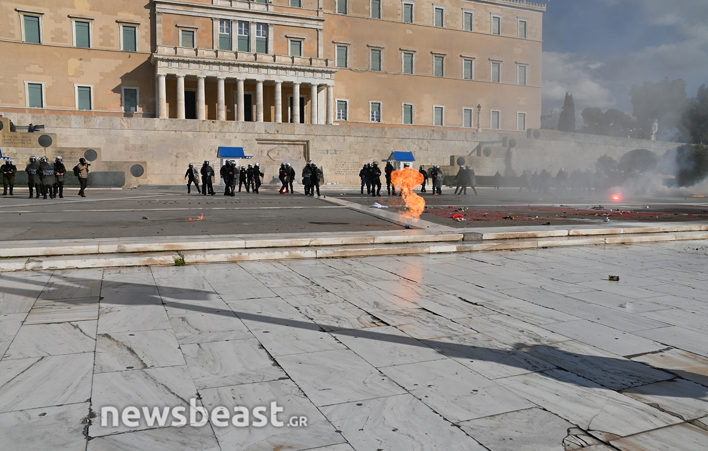 Όταν η πορεία των φοιτητών έφτασε στο Σύνταγμα, μικρή ομάδα κουκουλοφόρων αποκόπηκε από το κυρίως σώμα και πέταξε μολότοφ κατά των ΜΑΤ έξω από τα μεγάλα ξενοδοχεία του Συντάγματος.