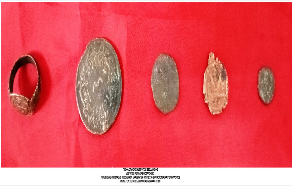 Στην οικία του 35χρονου βρέθηκαν ακόμα τέσσερα νομίσματα, για τα οποία αρμόδιος αρχαιολόγος της Εφορείας Αρχαιοτήτων Πόλης Θεσσαλονίκης, γνωμάτευσε ότι εμπίπτουν στις προστατευτικές διατάξεις της Νομοθεσίας «Για την Προστασία των Αρχαιοτήτων και εν γένει της πολιτιστικής κληρονομιάς».