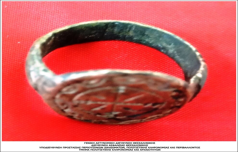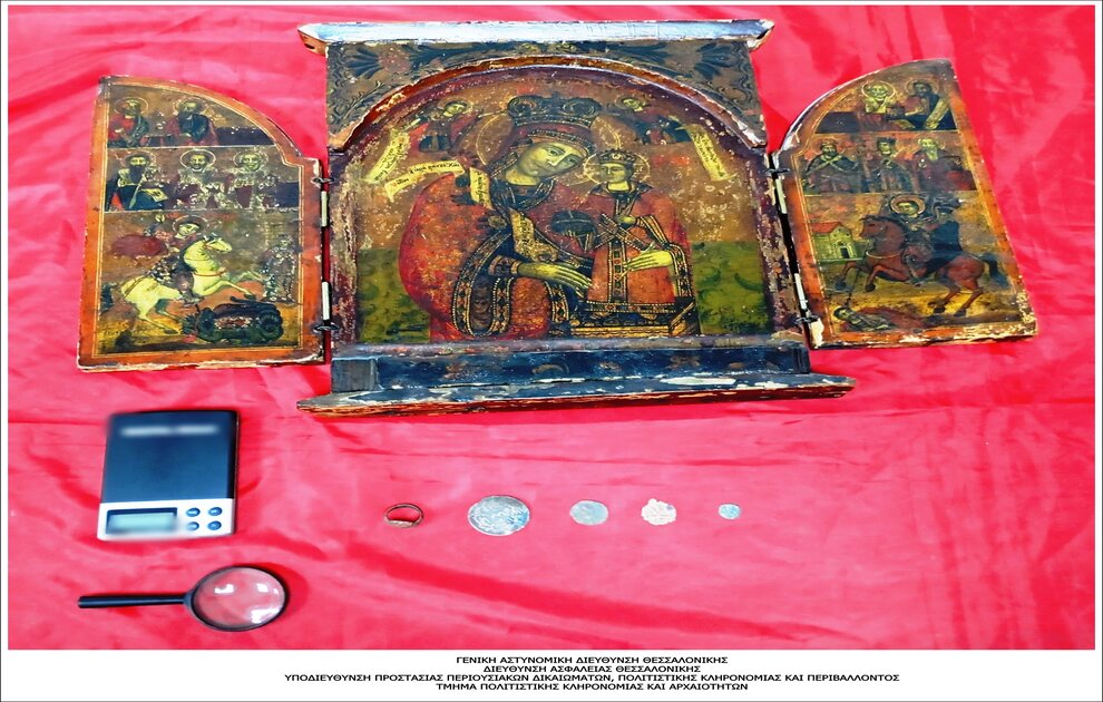 Μια τρίπτυχη αγιογραφία και ένα δαχτυλίδι με εγχάρακτο διάκοσμο βυζαντινής εποχής, έκρυβε μεταξύ άλλων στο σπίτι του την Καλαμαριά ένας 35χρονος, ο οποίος συνελήφθη από αστυνομικούς του Τμήματος Πολιτιστικής Κληρονομιάς και Αρχαιοτήτων της Διεύθυνσης Ασφάλειας Θεσσαλονίκης για παράβαση της νομοθεσίας «Για την Προστασία των Αρχαιοτήτων»