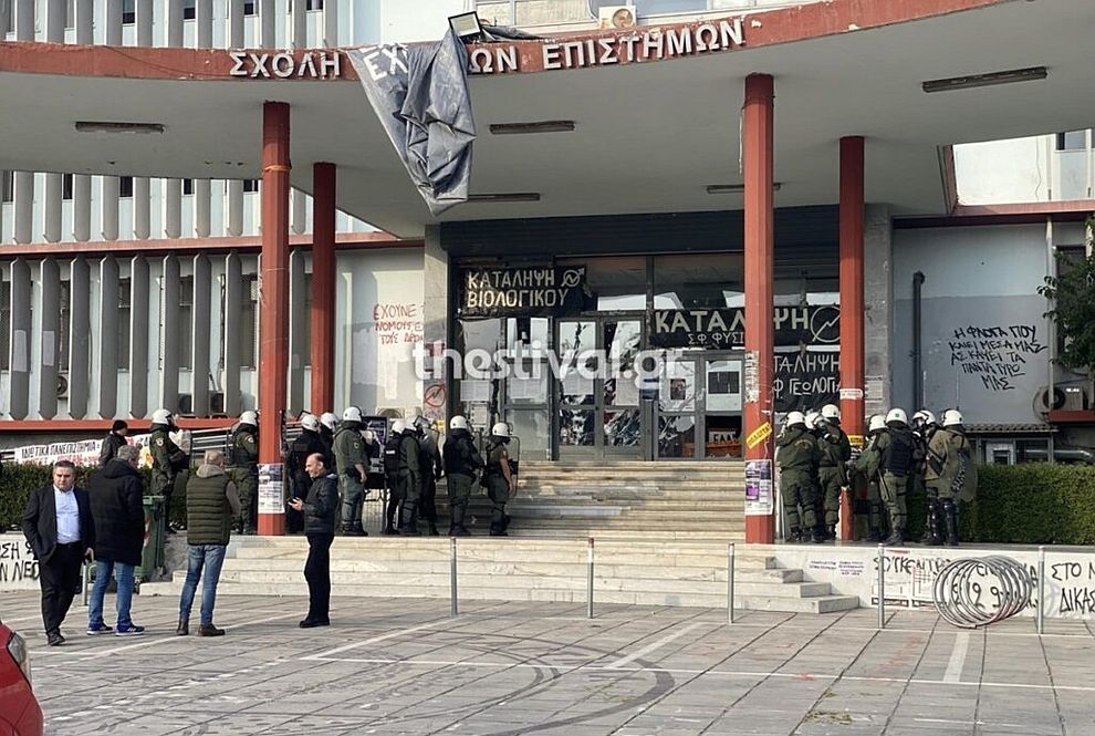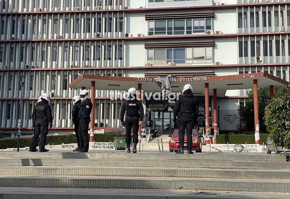 Μετά την Πανεπιστημιούπολη του Ζωγράφου, το πρωί του Σαββάτου, αστυνομική επέμβαση πραγματοποιήθηκε και στη Σχολή Θετικών Επιστημών του ΑΠΘ, όπου φοιτητές βρίσκονταν μπροστά από το κτίριο.