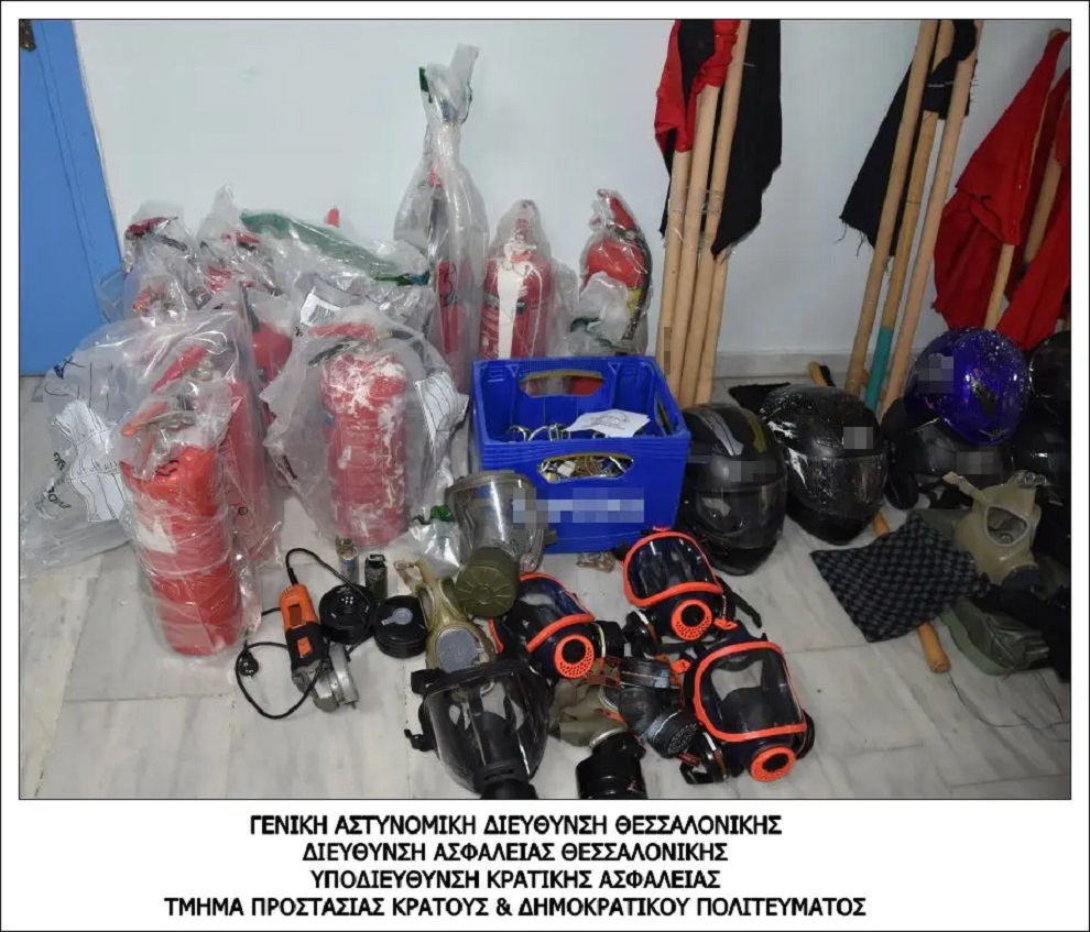 Ολόκληρο οπλοστάσιο βρέθηκε κατά τη διάρκεια της μεγάλης επιχείρησης της Αστυνομίας στη ΣΘΕ του ΑΠΘ το Σάββατο. Μεταξύ άλλων, στους χώρους του Πανεπιστημίου υπήρχαν κοντάρια, πυροτεχνικές κατασκευές, βαριοπούλα, κράνη και χειροβομβίδες κρότου λάμψης.