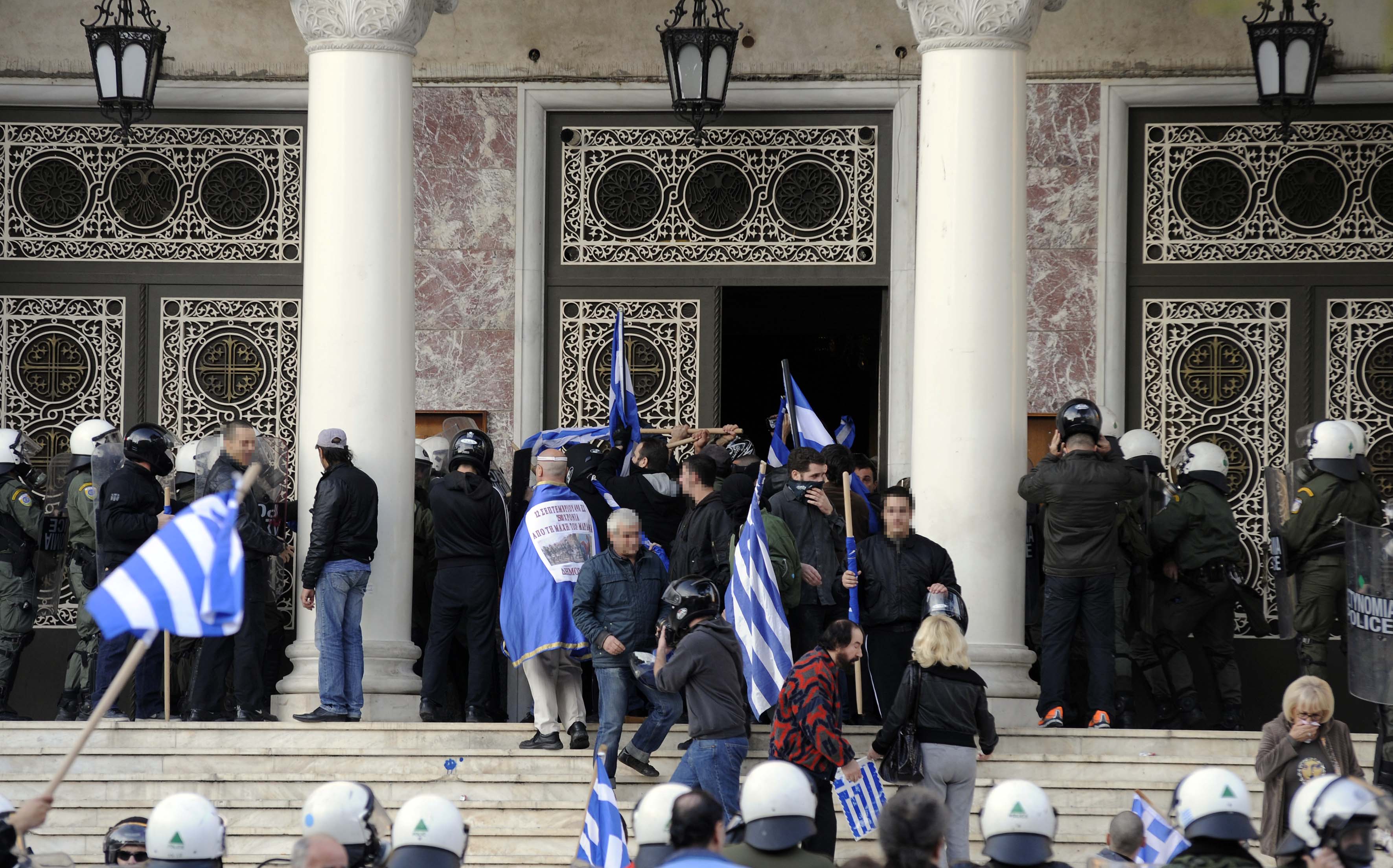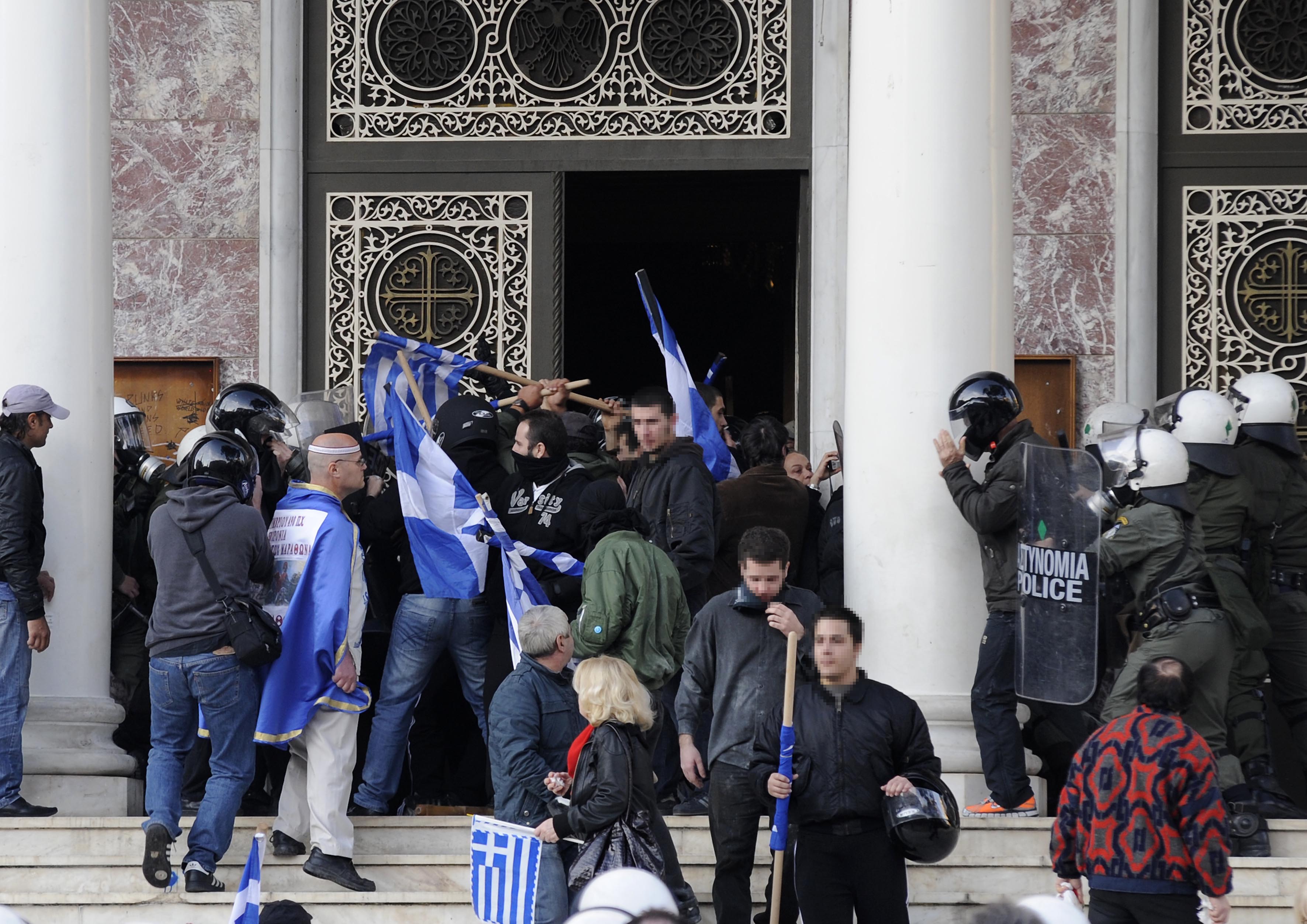 Τα επεισόδια ξεκίνησαν όταν 300 περίπου συγκεντρωθέντες στην πλατεία του Αγίου Παντελεήμονα επιχείρησαν να σπάσουν τον αστυνομικό φραγμό με ξύλα και άλλα αντικείμενα για να επιτεθούν στα άτομα που πραγματοποιούσαν αντιρατσιστικό συλλαλητήριο.