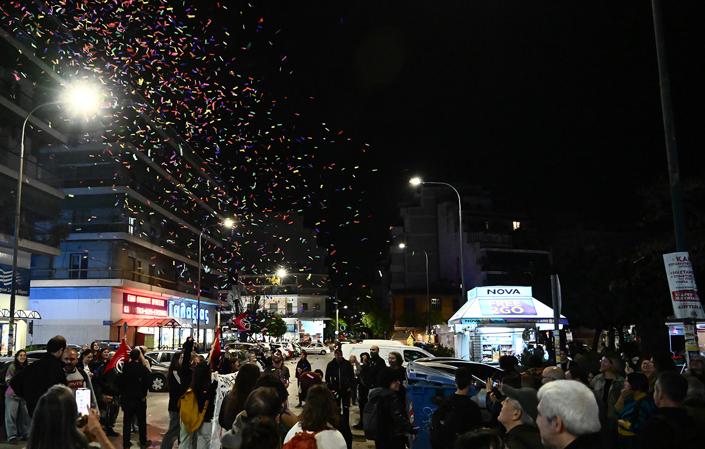 Δεκάδες πολίτες και μέλη της επιτροπής αλληλεγγύης της 12χρονης από τον Κολωνό, θύμα βιασμού και μαστροπείας, συγκεντρώθηκαν για να εκφράσουν την ικανοποίησή τους για την καταδικαστική απόφαση σε βάρος του Μίχου και την αθώωση της μητέρας της ανήλικης.
