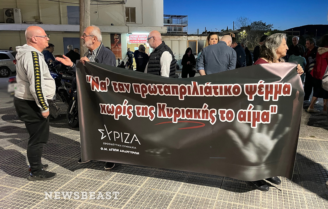 Κάλεσμα απηύθυνε η Οργάνωση Μελών του ΣΥΡΙΖΑ Αγίων Αναργύρων και παρόντες στη συγκέντρωση διαμαρτυρίας ήταν ο υποψήφιος για το ευρωψηφοδέλτιο του ΣΥΡΙΖΑ, Μάριος Αθανασίου και η βουλευτής του ΣΥΡΙΖΑ, Ρένα Δούρου.