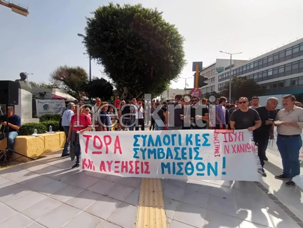 Σε συμμετοχή τους, στο απεργιακό συλλαλητήριο, στην πλατεία Δημοτικής Αγοράς στα Χανιά, προχώρησαν οι διανομείς της πόλης, ως ένδειξη διαμαρτυρίας για τον θάνατο ακόμη ενός συναδέλφου τους.