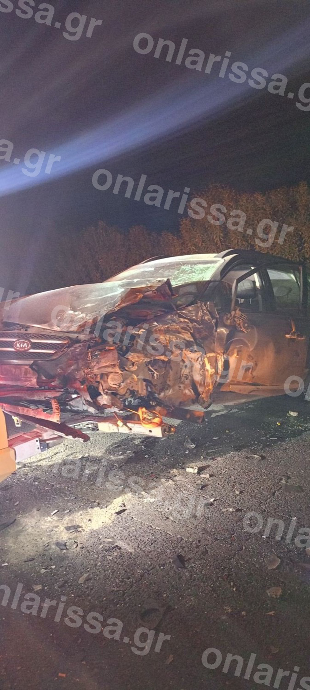 Από τη σφοδρή σύγκρουση τμήματα και από τα τρία αυτοκίνητα μετατράπηκαν σε άμορφη μάζα σιδερικών, ενώ χρειάστηκε η επέμβαση της Πυροσβεστικής Υπηρεσίας Λάρισας για τον απεγκλωβισμό ενός ατόμου.