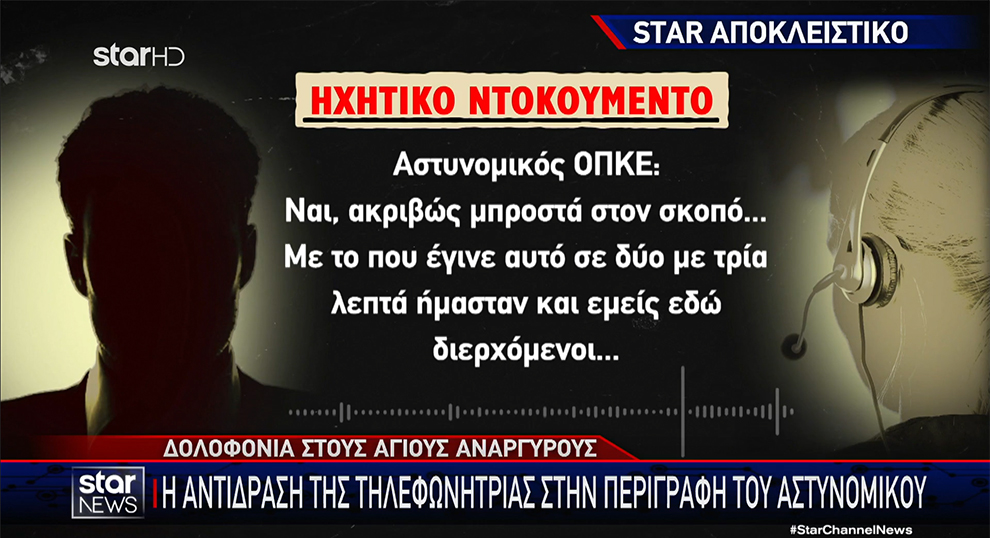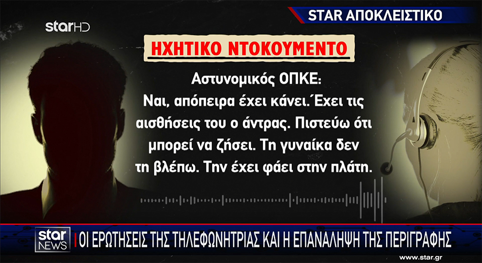 Στο ντοκουμέντο που δημοσιεύει το «Star» καταγράφεται η συνομιλία ανάμεσα σε αστυνομικό της ΟΠΚΕ και τηλεφωνήτρια της Άμεσης Δράσης, τουλάχιστον τρία λεπτά αφότου ο 39χρονος μαχαίρωσε μέχρι θανάτου την Κυριακή.