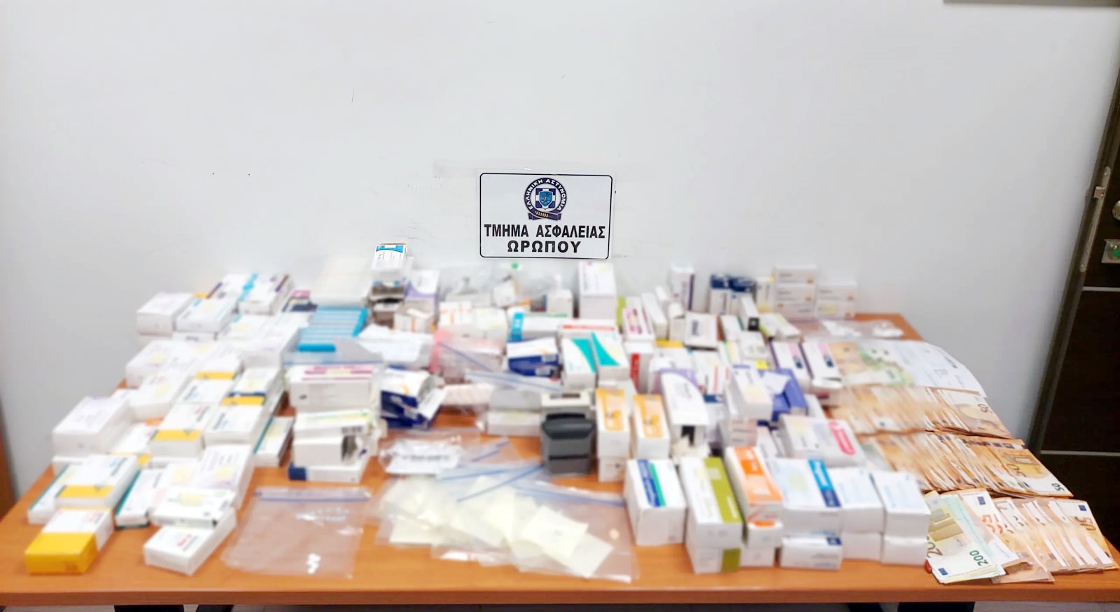Να θυμίσουμε ότι, στο πλαίσιο της αυτόφωρης διαδικασίας, αστυνομικοί του Τμήματος Ασφαλείας Ωρωπού με τη συνδρομή της ΟΠΚΕ συνέλαβαν πέντε άτομα ηλικίας 46, 45, 42, 41 και 36 ετών αντίστοιχα, για παραβάσεις των νομοθεσιών περί εξαρτησιογόνων ουσιών και περί παροχής υπηρεσιών ψυχικής υγείας. Σε έρευνες που έγιναν, βρέθηκαν και κατασχέθηκαν μεταξύ άλλων: 4.343 φαρμακευτικά δισκία χωρίς τις απαιτούμενες ιατρικές συνταγές, το χρηματικό ποσό των 13.300 ευρώ και 11 μπλοκ αποδείξεων μαζί με χειρόγραφες σημειώσεις.