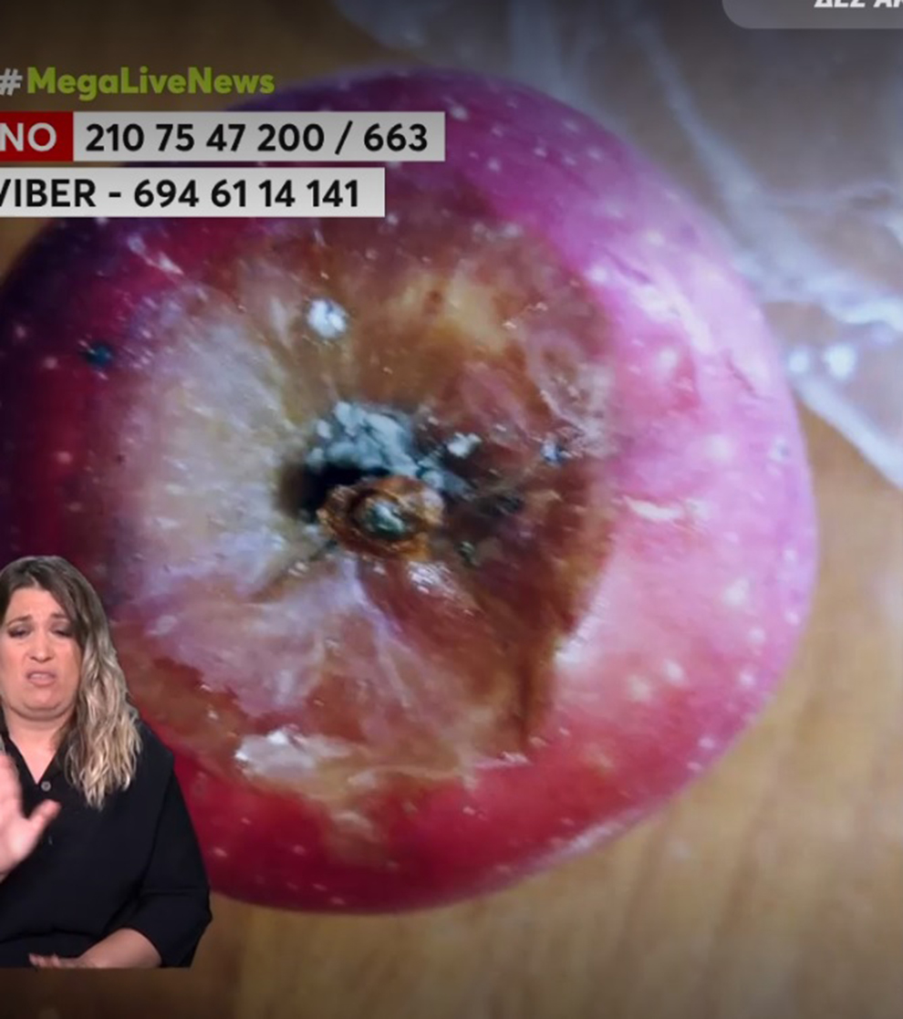 Ο ίδιος εξηγεί: «Η πρώτη φωτογραφία είναι μήλο. Ναι. Έτσι παραδόθηκε στο παιδί. Πριν 6 μήνες. Είναι σάπιο. Είναι ένα σάπιο μήλο, το οποίο το έβαλαν μέσα, για να το φάει ένα παιδάκι.