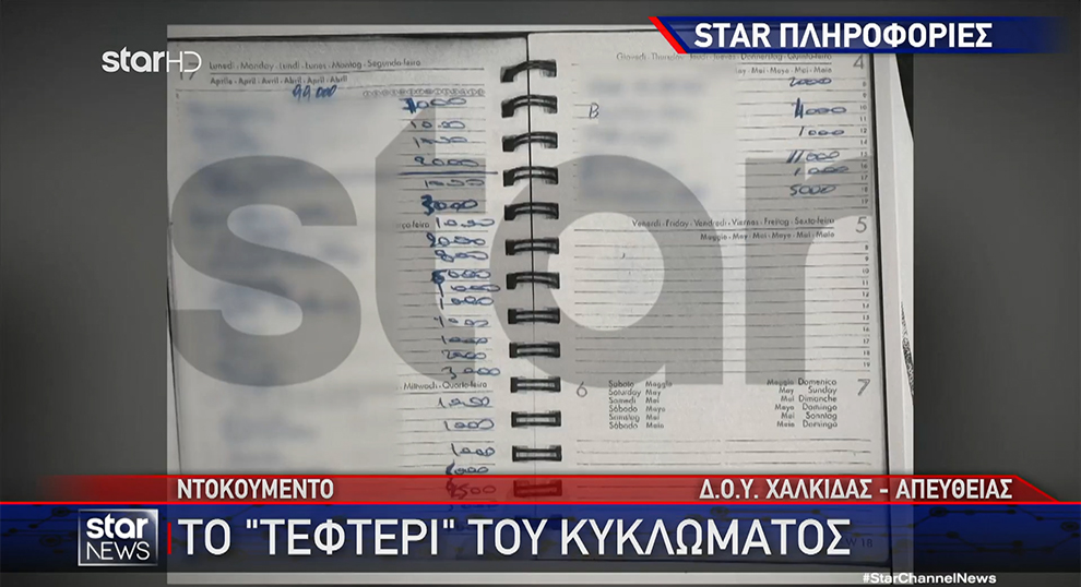 Σύμφωνα με ντοκουμέντο που παρουσιάζει το Star, η προϊστάμενη κρατούσε ημερολογιακό αρχείο, γράφοντας ημερομηνίες και ποσά που έπαιρναν από επιχειρηματίες της περιοχής. Τα ποσά άρχιζαν από 250 ευρώ και έφταναν τα 11.000 ευρώ. Χαρακτηριστικά αναφέρεται σε πολύ γνωστό επιχειρηματία, δίπλα στο όνομα του οποίου διαβάζουμε το ποσό των 5.000 ευρώ.