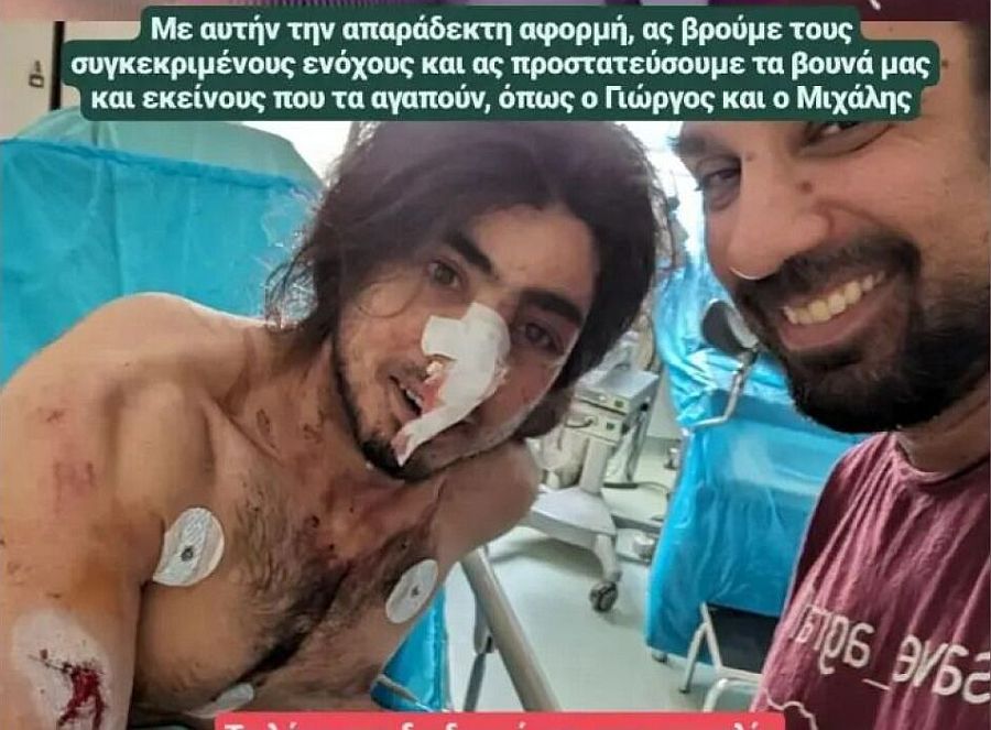 Στις φωτογραφίες που δημοσίευσε φαίνονται τα τραύματα των δύο εθελοντών. Ο 32χρονος δέχτηκε τρεις μαχαιριές στην πλάτη και μία στο χέρι και έχει κάταγμα στη μύτη, ενώ ο 33χρονος τραυματίστηκε στο φρύδι και στο κεφάλι.
