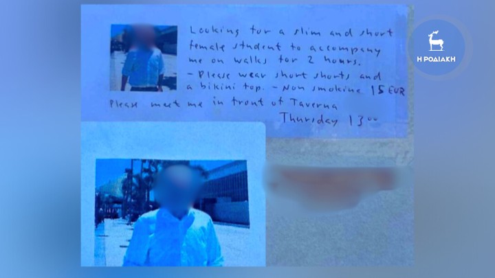 Στα χέρια της αστυνομίας βρίσκεται από το μεσημέρι της Πέμπτης, ένας Νορβηγός που ζει στη Ρόδο, ο οποίος είχε -όπως όλα δείχνουν- αναρτήσει αγγελία έξω από λύκειο του νησιού, αναζητώντας νεαρά κορίτσια για παρέα, έναντι… 15 ευρώ.