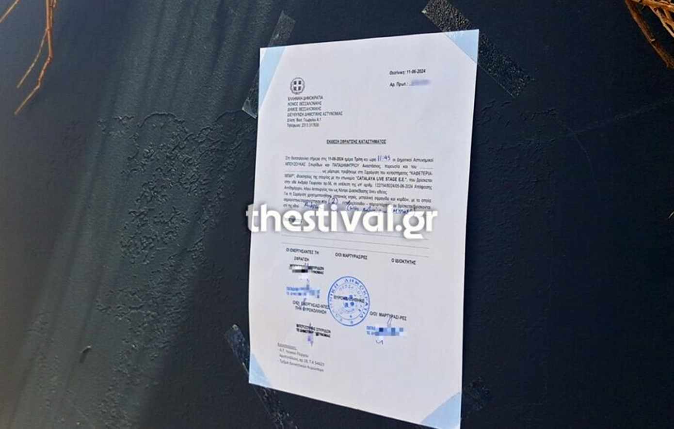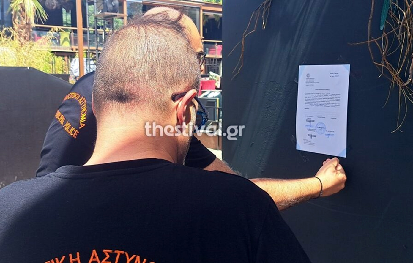 Οι δημοτικοί αστυνομικοί έκλεισαν με ειδική ταινία και σφραγίδα περιμετρικά το κατάστημα, ενώ θυροκόλλησαν και την απόφαση του δήμου Θεσσαλονίκης.