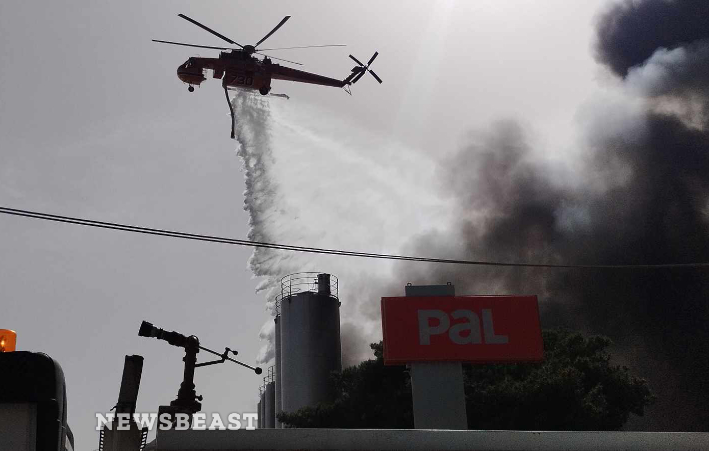 Σύμφωνα με την Πυροσβεστική, η φωτιά δεν επεκτάθηκε σε διπλανές επιχειρήσεις, ενώ δεν υπήρξε αναφορά για εγκλωβισμένα άτομα. Για την κατάσβεση της φωτιάς επιχειρούν 45 πυροσβέστες με 15 οχήματα, ενώ από αέρος συνδράμει ένα ελικόπτερο. Συνδρομή παρέχουν, επίσης, υδροφόρες ΟΤΑ και εθελοντές. Νωρίτερα, μήνυμα μέσω του 112 εστάλη στους πολίτες, καλώντας τους να παραμείνουν σε εσωτερικούς χώρους και να κλείσουν πόρτες και παράθυρα και προειδοποιώντας τους ότι οι καπνοί κατευθύνονται στην περιοχή τους.
