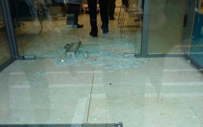 Οι δράστες, που φορούσαν κράνη, εισέβαλαν στο υποκατάστημα, αφού πρώτα έσπασαν την πόρτα με βαριοπούλα, αιφνιδιάζοντας τους υπαλλήλους που βρίσκονταν μέσα.