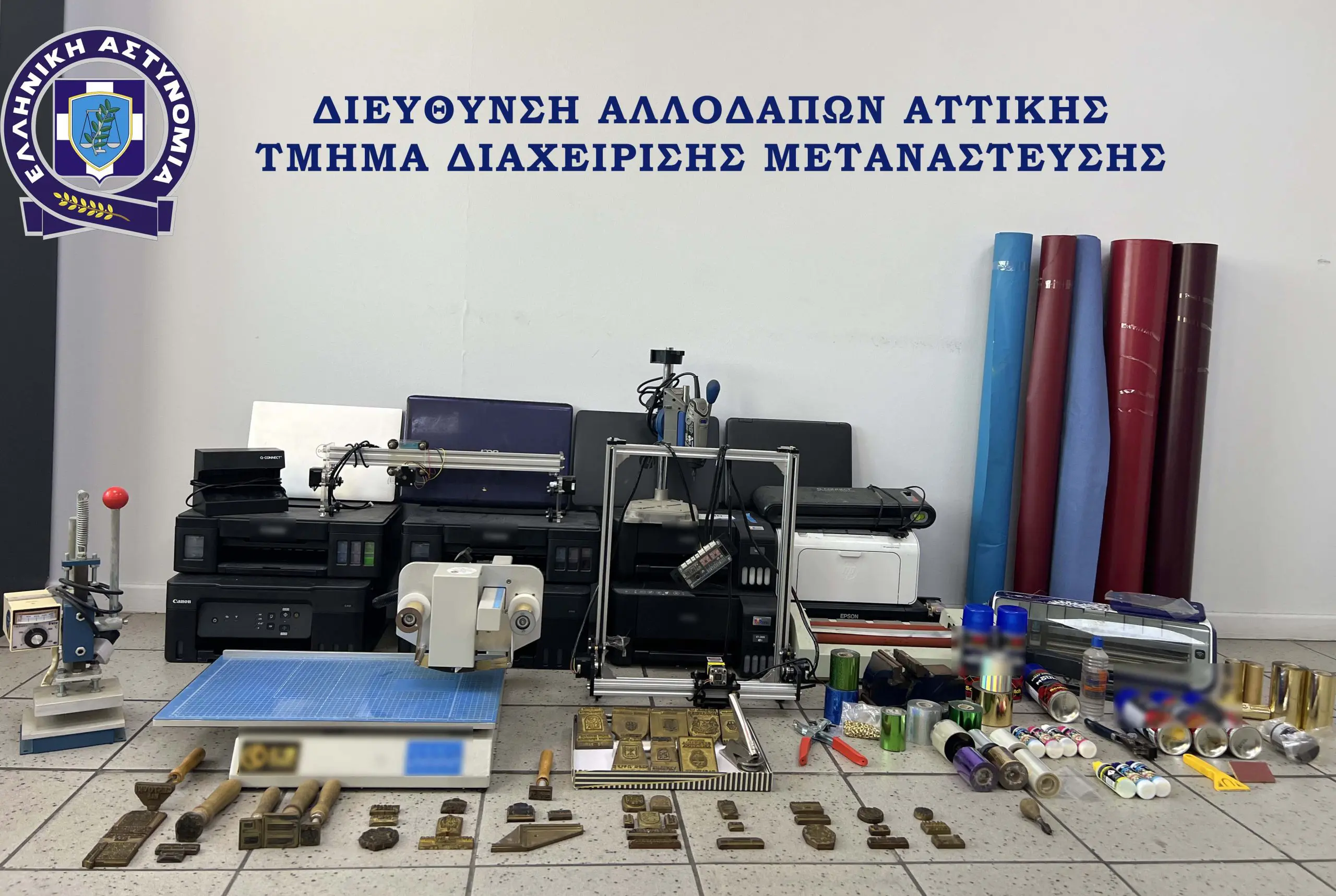 Από το Τμήμα Διαχείρισης Μετανάστευσης της Διεύθυνσης Αλλοδαπών Αττικής εντοπίστηκε τη Δευτέρα 8 Ιουλίου 2024, πλήρως εξοπλισμένο εργαστήριο κατάρτισης πλαστών ταξιδιωτικών εγγράφων σε οικία στην Καλλιθέα.