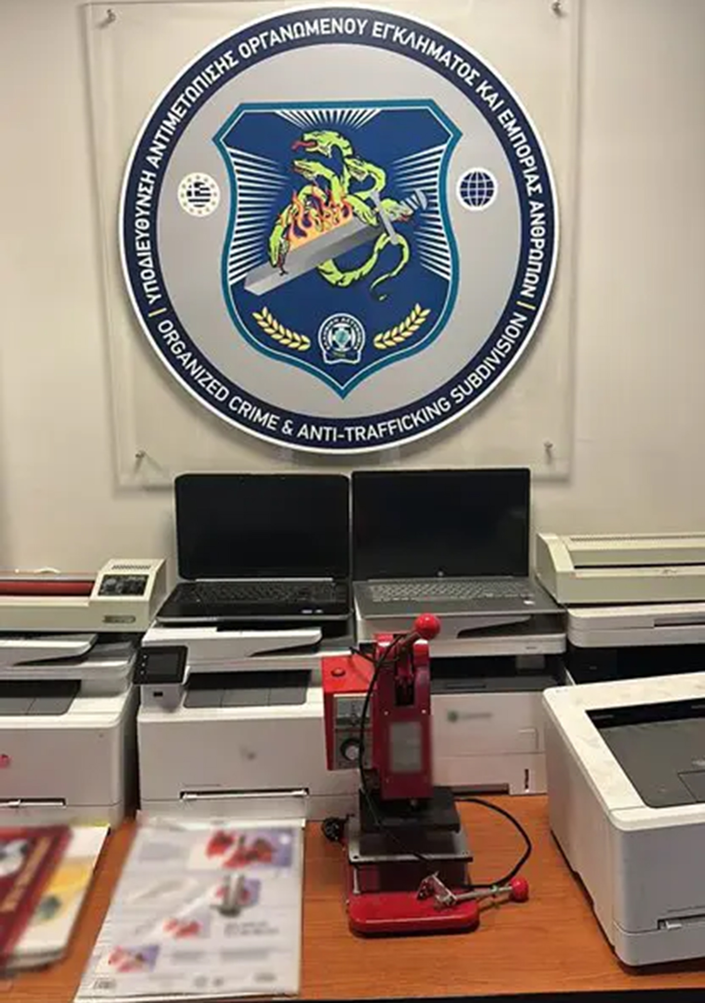 - Πλήθος διαβατηρίων, δελτίων ταυτότητας, αδειών διαμονής και αδειών ικανότητας τρίτων προσώπων διαφόρων χωρών,