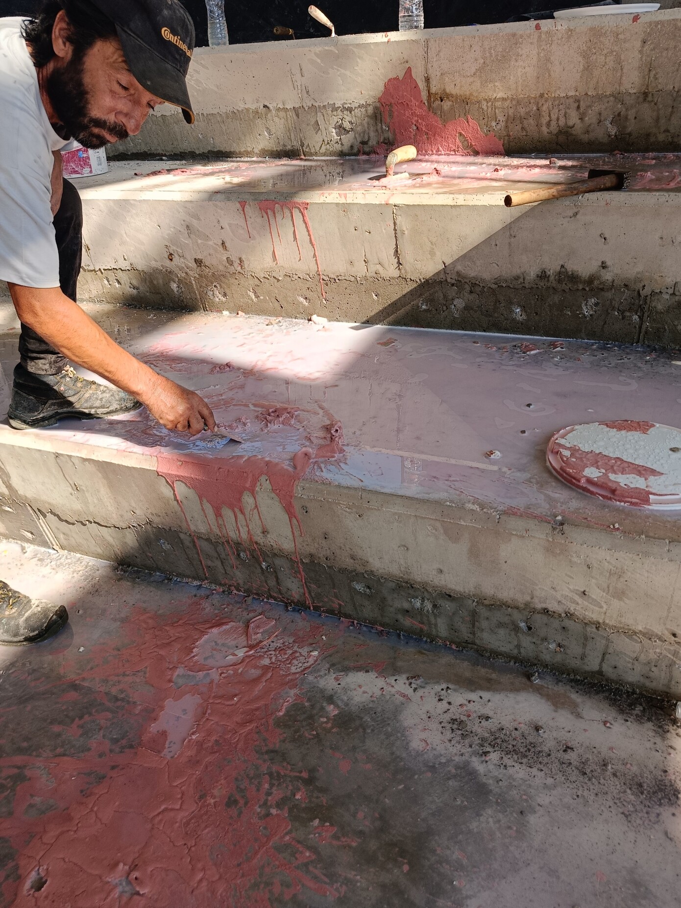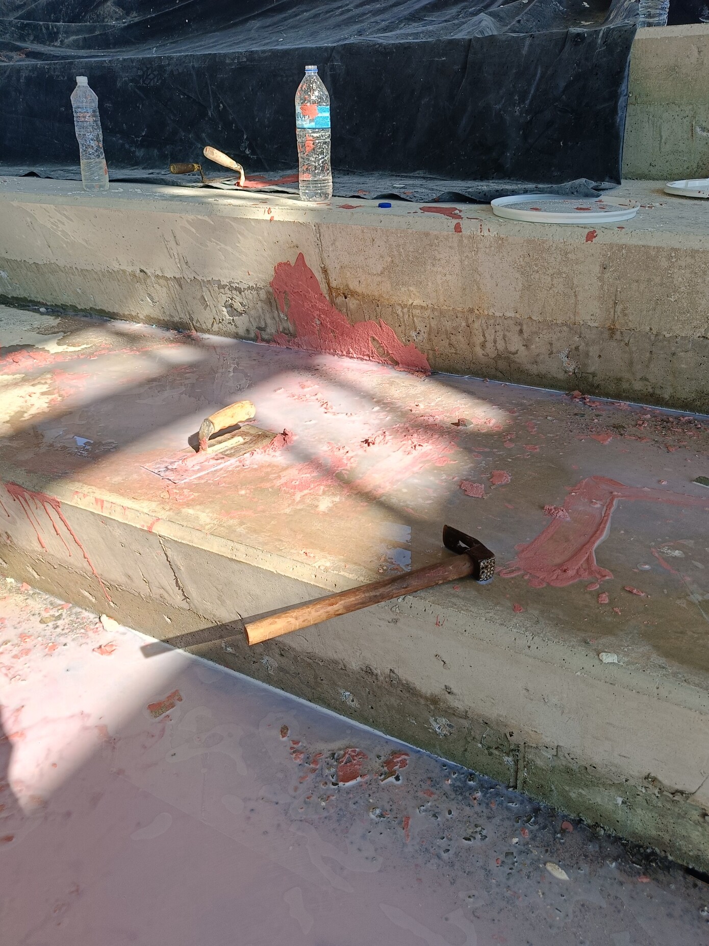 Μάλιστα, λόγω του ότι το συγκεκριμένο υλικό -αστάρι πρόσφυσης και πάστας ακρυλικού σοβά υψηλής σκληρότητας και πρόσφυσης- ενσωματώνεται με τις επιφάνειες, η απομάκρυνσή του είναι εξαιρετικά δυσχερής. Η ζημιά έγινε ακόμη μεγαλύτερη καθώς απλώθηκε επάνω στη διαμορφωμένη επιφάνεια των κερκίδων.