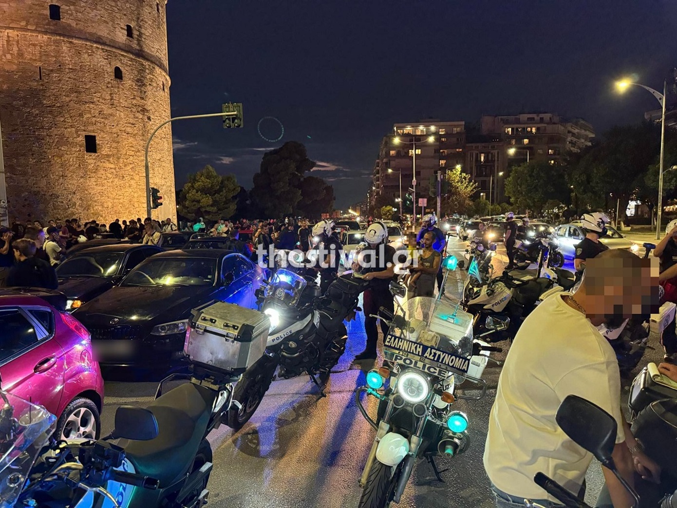 Συνεχίστηκε το κυνηγητό της Αστυνομίας σε «φτιαγμένα» αυτοκίνητα και μηχανάκια που είχαν συγκεντρωθεί το απόγευμα στο μνημείο του Λευκού Πύργου, στη Θεσσαλονίκη.