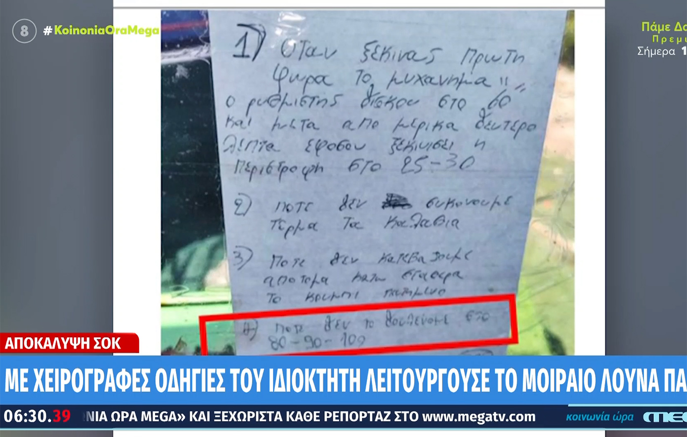 Χειρόγραφες οδηγίες που εντόπισε ο πραγματογνώμονας στο σημείο αποκαλύπτουν πως το φονικό παιχνίδι δεν έπρεπε να λειτουργεί με ταχύτητα που υπερβαίνει το 70.
