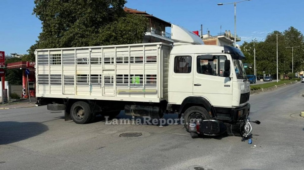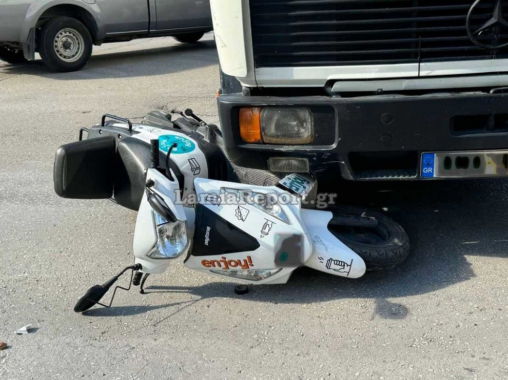 Τροχαίο ατύχημα με μηχανάκι ντελίβερι να πέφτει σε ρόδες φορτηγού, σημειώθηκε στη Λαμία το πρωί της Τρίτης (24/09).