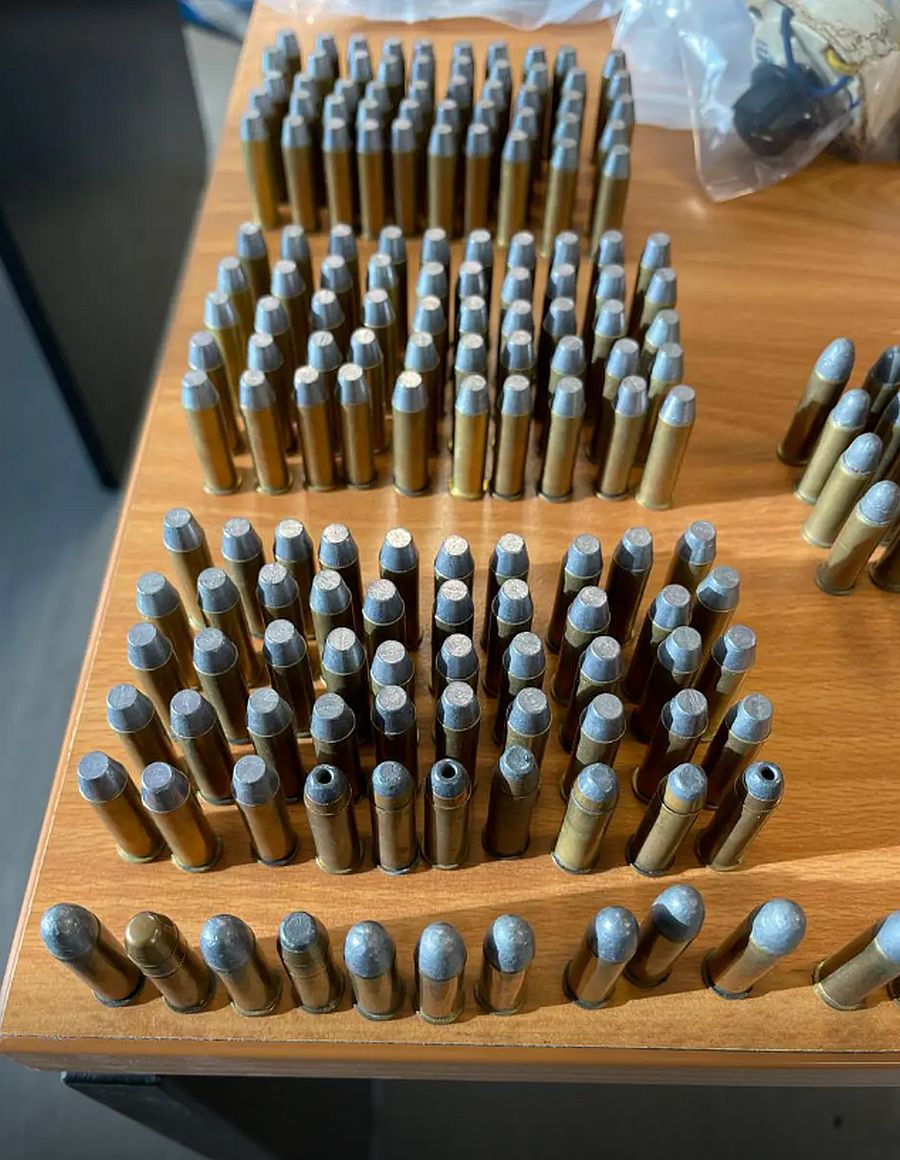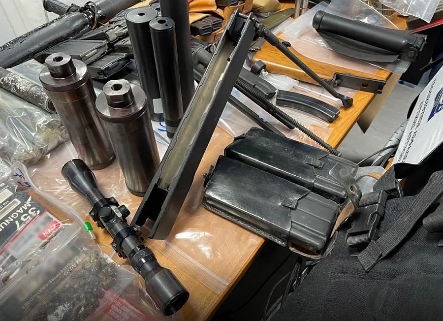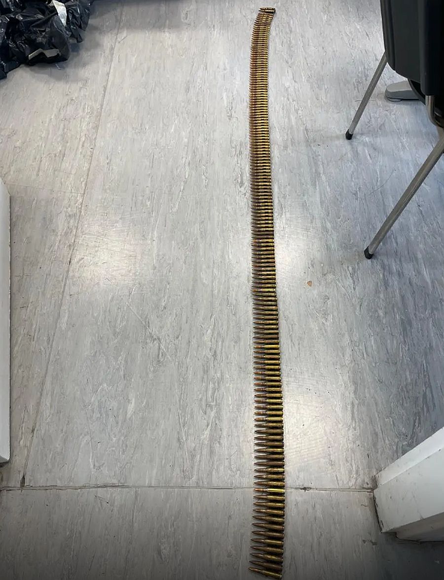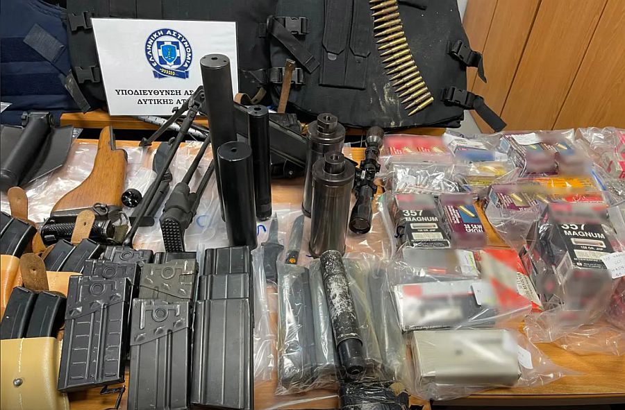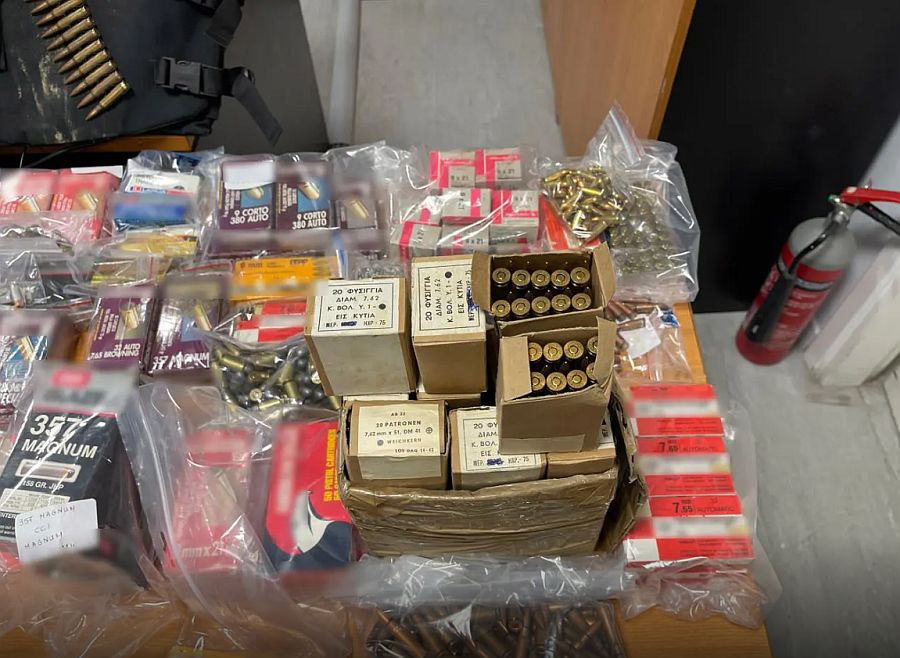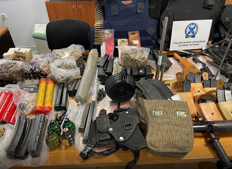 Από την έρευνα στο σπίτι, μεταξύ άλλων, βρέθηκαν και κατασχέθηκαν 5 αυτοσχέδιοι εκρηκτικοί μηχανισμοί, 5 αυτοσχέδιοι μηχανισμοί χρονοκαθυστέρησης, 5 χειροβομβίδες, 4.459 φυσίγγια, αυτοσχέδιο πυροβόλο όπλο, 25 φωτοβολίδες, 70 γεμιστήρες, 6 σιγαστήρες, 8 θήκες γεμιστήρων, διόπτρα, 3 αλεξίσφαιρα γιλέκα, ξιφολόγχη, εξαρτήματα όπλων, 2 μαχαίρια και μεταλλικός τρίφτης.