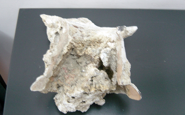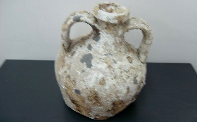 * Άνω τμήμα οξυπύθμενου αμφορέα ύψους 36 εκ. με θαλάσσια ιζήματα.