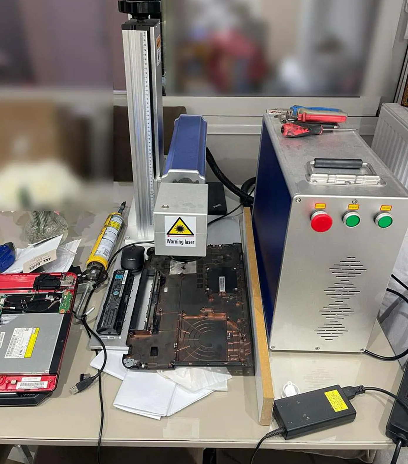 - ειδικό μηχάνημα χάραξης (laser) χαρακτηριστικών σε σκληρά αντικείμενα που χρησιμοποιείτο για χαράξεις επωνυμιών και σειριακών αριθμών όπλων, συνοδευόμενο με υπολογιστή,