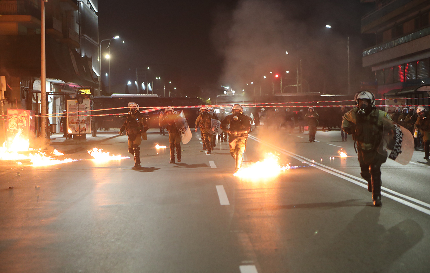 Επίθεση με αυτοσχέδιες βόμβες μολότοφ δέχθηκε διμοιρία των ΜΑΤ στην οδό Αγίου Δημητρίου, έξω από το τουρκικό προξενείο, στη Θεσσαλονίκη τα ξημερώματα της Δευτέρας 18/11 στο πλαίσιο των διαδηλώσεων για την 51η επέτειο της εξέγερσης του Πολυτεχνείου.