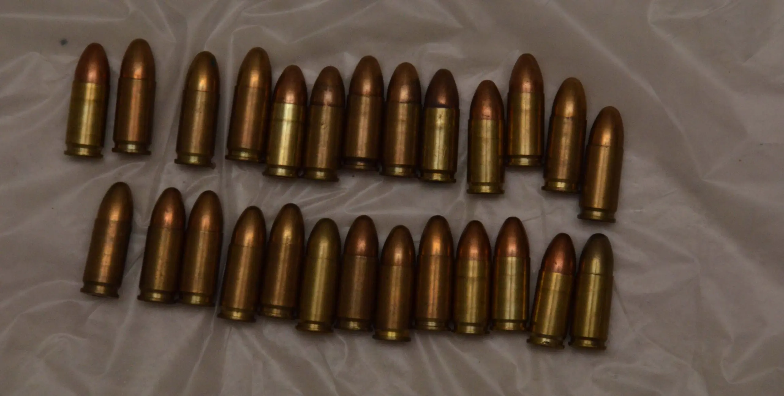 - 6 πυροβόλα όπλα, διάφορα μέρη όπλων, γεμιστήρες και πλήθος φυσιγγίων,