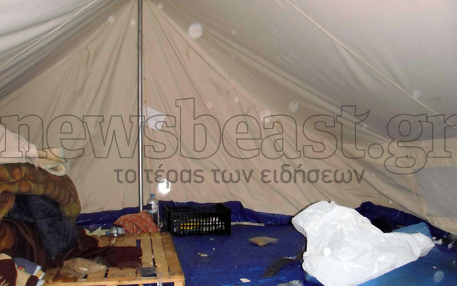 Κι αν οι «τυχεροί» που κοιμούνται στο υπόγειο και το ισόγειο του κτιρίου, τι γίνεται με τους υπόλοιπους που «φιλοξενούνται» στο προαύλιο, μέσα σε σκηνές; Οι φωτογραφίες δίνουν την απάντηση…