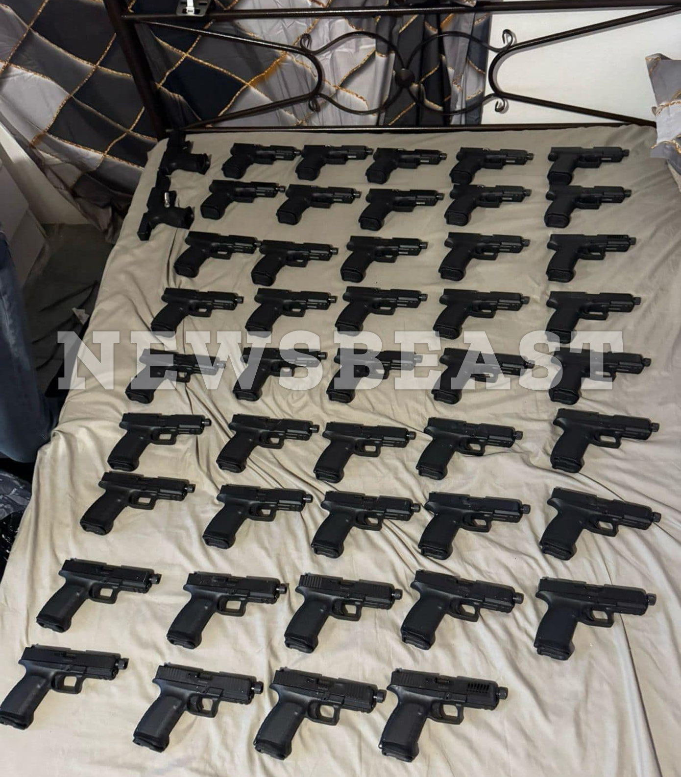 Πρόκειται για καινούργια πιστόλια, μάρκας Glock, που εντοπίστηκαν σε δώμα – καβάντζα στην οδό Σκιάθου στο κέντρο της Αθήνας σε μια βαλίτσα. Στο δώμα αυτό έμεναν δύο Τούρκοι, οι οποίοι είχαν, μάλιστα, και από ένα όπλο κάτω από το μαξιλάρι τους.