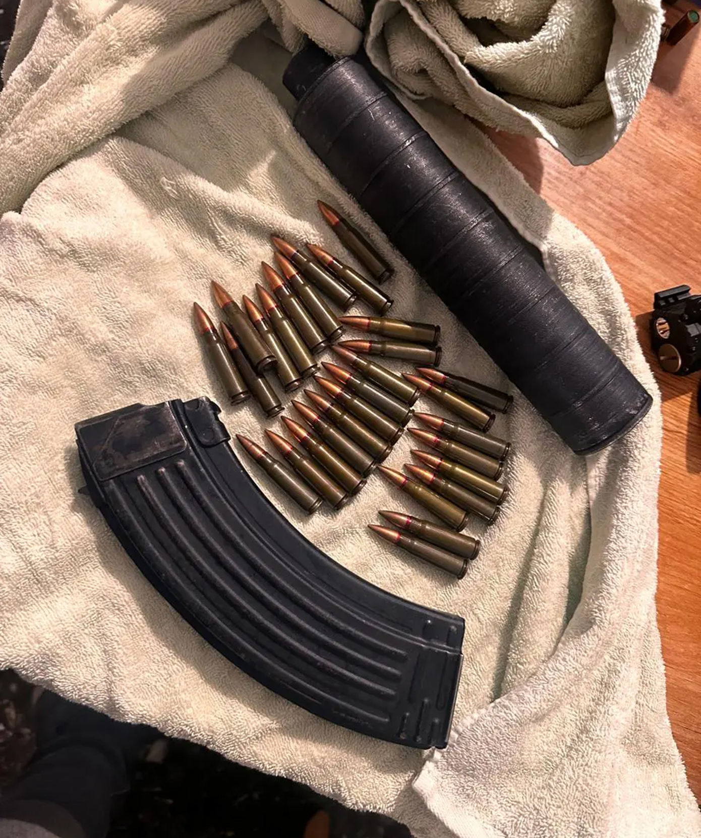 - πολεμικό τυφέκιο τύπου Καλάσνικοφ, με 29 φυσίγγια, διόπτρα και σιγαστήρα,