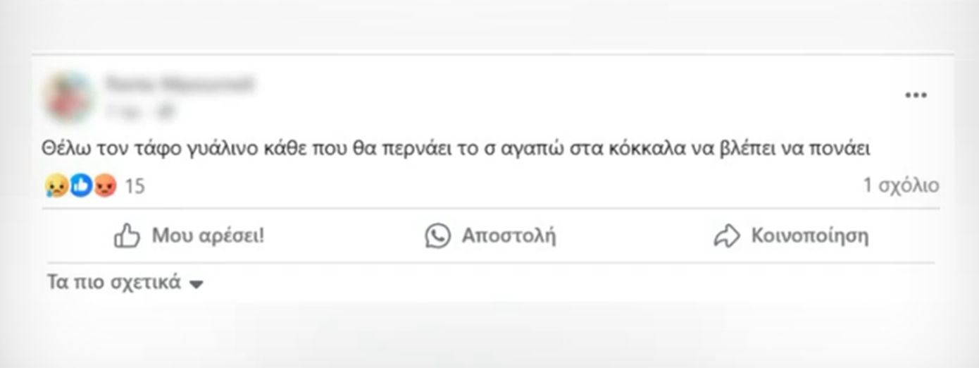 «Θέλω τον τάφο γυάλινο κάθε που θα περνάει το σ’ αγαπώ στα κόκκαλα να βλέπει να πονάει». Τη συγκλονιστική αυτή ανάρτηση είχε κάνει η 36χρονη Ράνια, τρεις μέρες προτού βρει τραγικό θάνατο από τον 33χρονο Γάλλο που τη χτύπησε με το αυτοκίνητο.