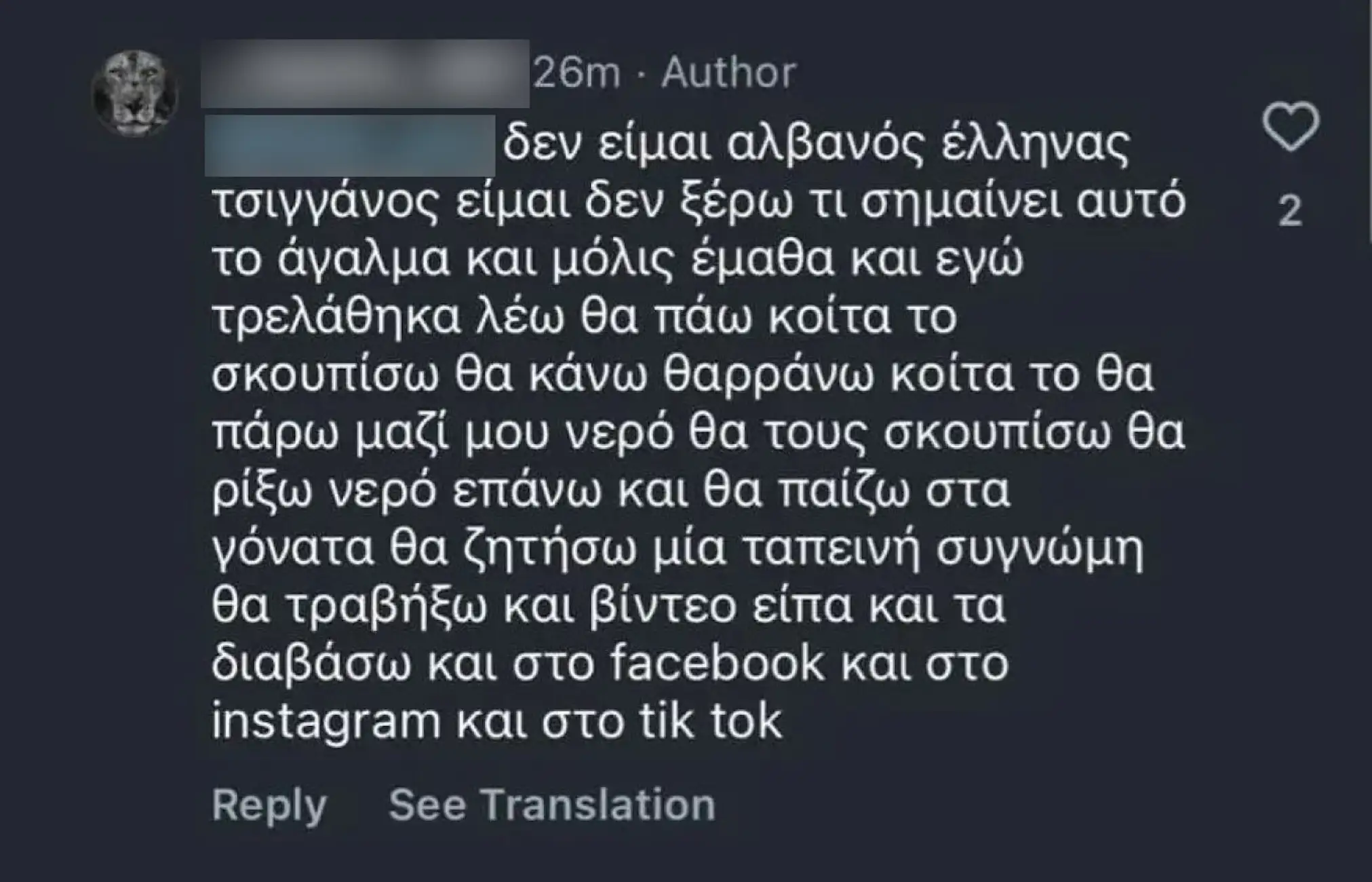Ο νεαρός που δημοσίευσε το βίντεο με τον βανδαλισμό ζήτησε συγγνώμη και εξέφρασε την πρόθεσή του ο ίδιος να καθαρίσει το άγαλμα. «Δεν είμαι Αλβανός. Έλληνας τσιγγάνος είμαι, και δεν ήξερα τι σημαίνει το άγαλμα. Μόλις το έμαθα κι εγώ τρελάθηκα. Λέω θα πάω εκεί να το σκουπίσω. Θα πάρω μαζί μου νερό να το σκουπίσω. Θα πέσω στα γόνατα και θα ζητήσω μια ταπεινή συγγνώμη. Θα τραβήξω και βίντεο και θα το ανεβάσω στο Facebook, στο Instagram και στο Tiktok», ήταν μια από τις απαντήσεις του νεαρού στους σχολιασμούς που δέχτηκε στην ανάρτησή του.