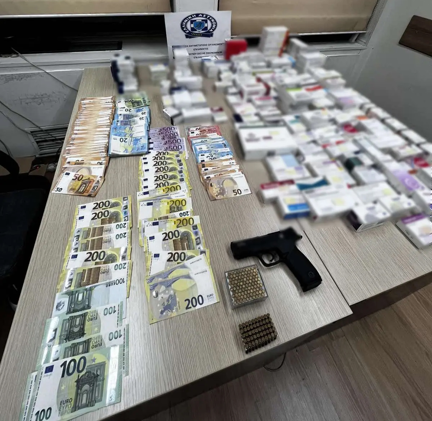 Σε έρευνες που πραγματοποιήθηκαν σε οικίες, φαρμακεία και τραπεζικές θυρίδες βρέθηκαν και κατασχέθηκαν: