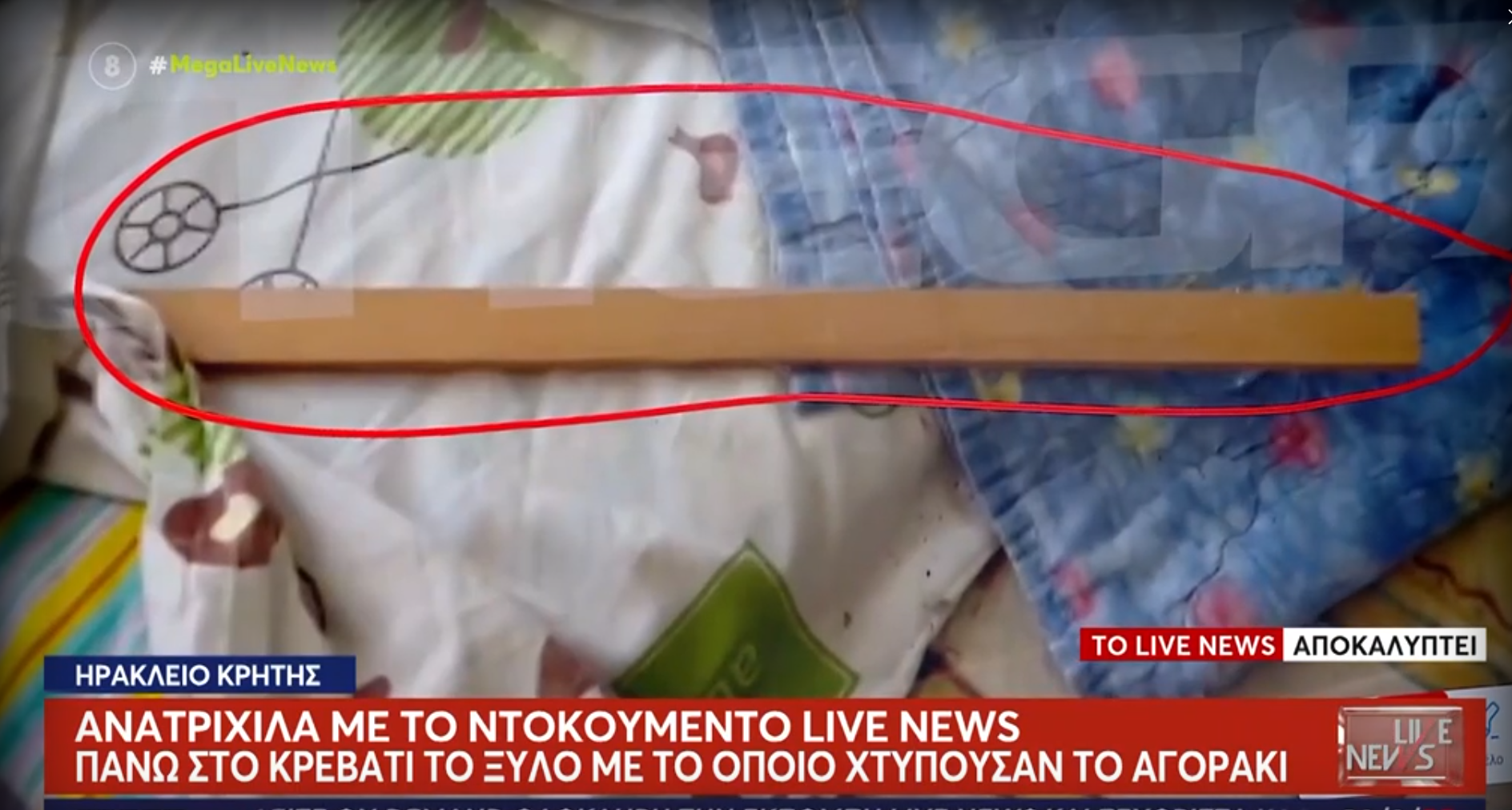 Το Mega φέρνει στη δημοσιότητα το ξύλο με το οποίο ξυλοκοπούσαν το άτυχο αγοράκι, ενώ παρουσιάζει και τα υπόλοιπα μέρη του σπιτιού, στο οποίο οι δύο κατηγορούμενοι ισχυρίζονται πως το παιδί είχε χτυπήσει από μόνο του.