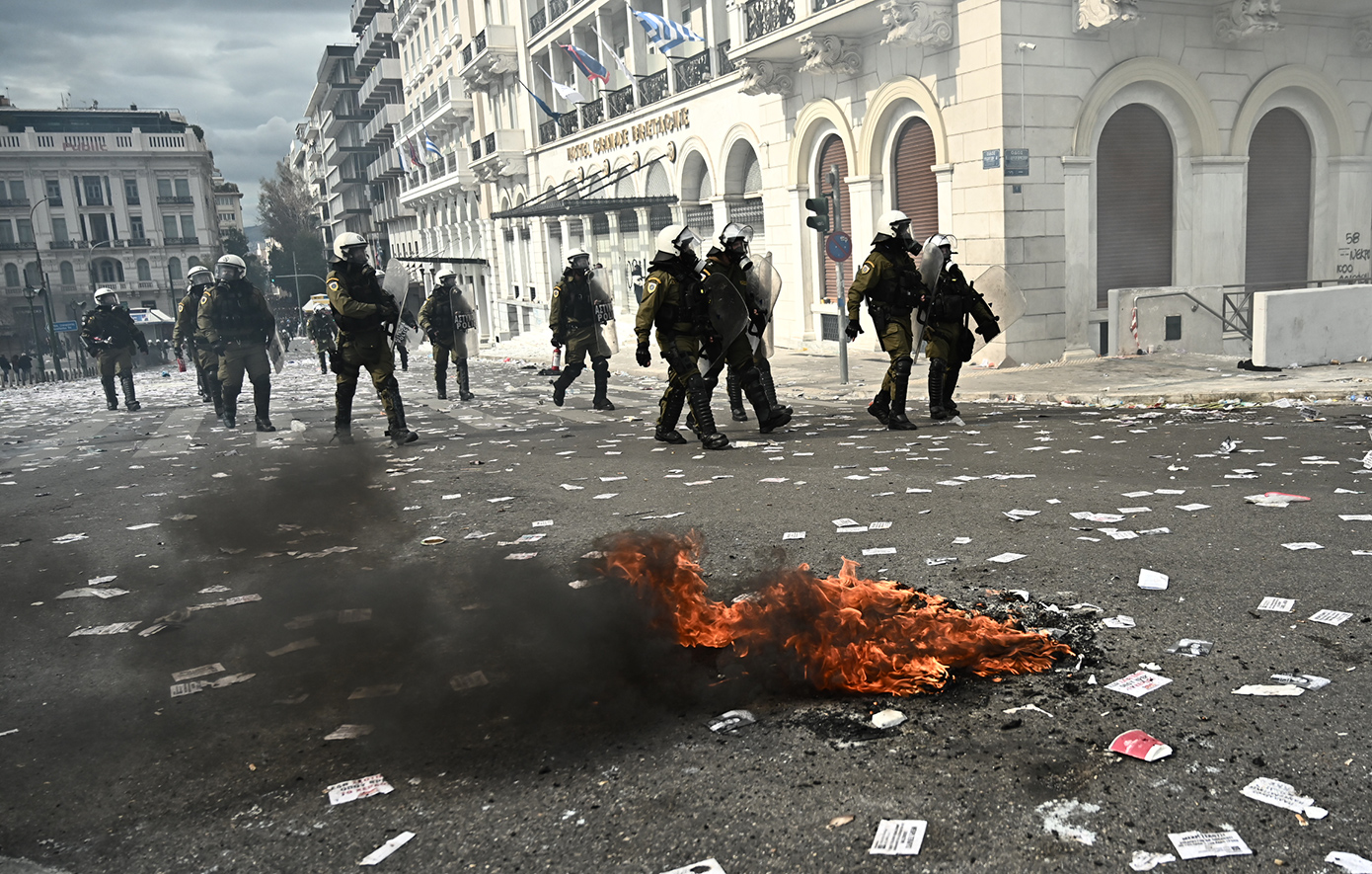 Σοβαρά επεισόδια ξεκίνησαν λίγη ώρα μετά το τέλος των ομιλιών στη συγκέντρωση για τα Τέμπη στον προαύλιο χώρο της Βουλής στο Σύνταγμα.