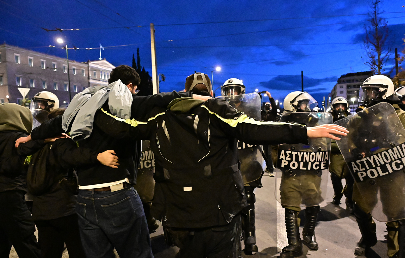 Νέα εστία έντασης στο κέντρο της Αθήνας λίγο μετά τις 18:30, στο Σύνταγμα, όπου παρέμεναν μέχρι και αυτή την ώρα διαδηλωτές που συμμετείχαν στη συγκέντρωση για τα δύο χρόνια από την τραγωδία στα Τέμπη.