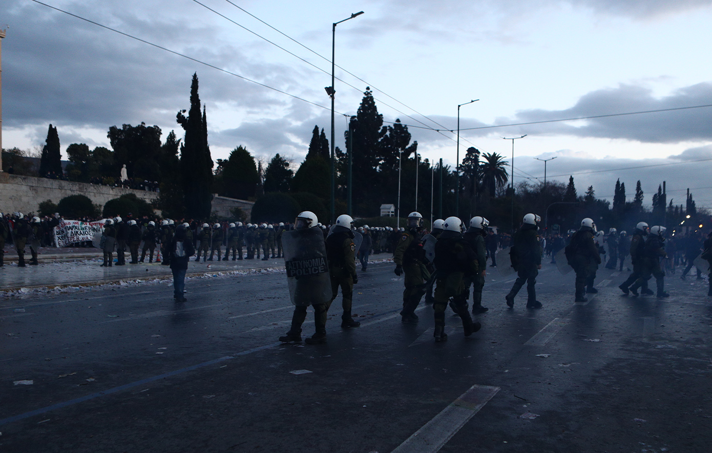 Επεισόδια σημειώθηκαν και στη Σταδίου, με διμοιρίες να απωθούν τους συγκεντρωμένους προς Πανεπιστημίου και Εξάρχεια.