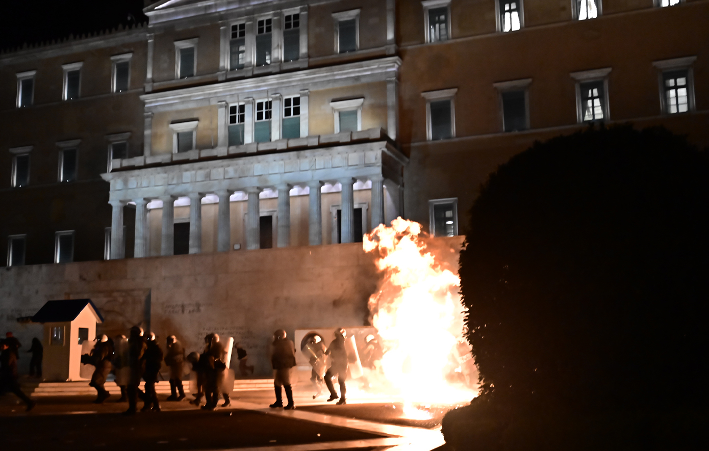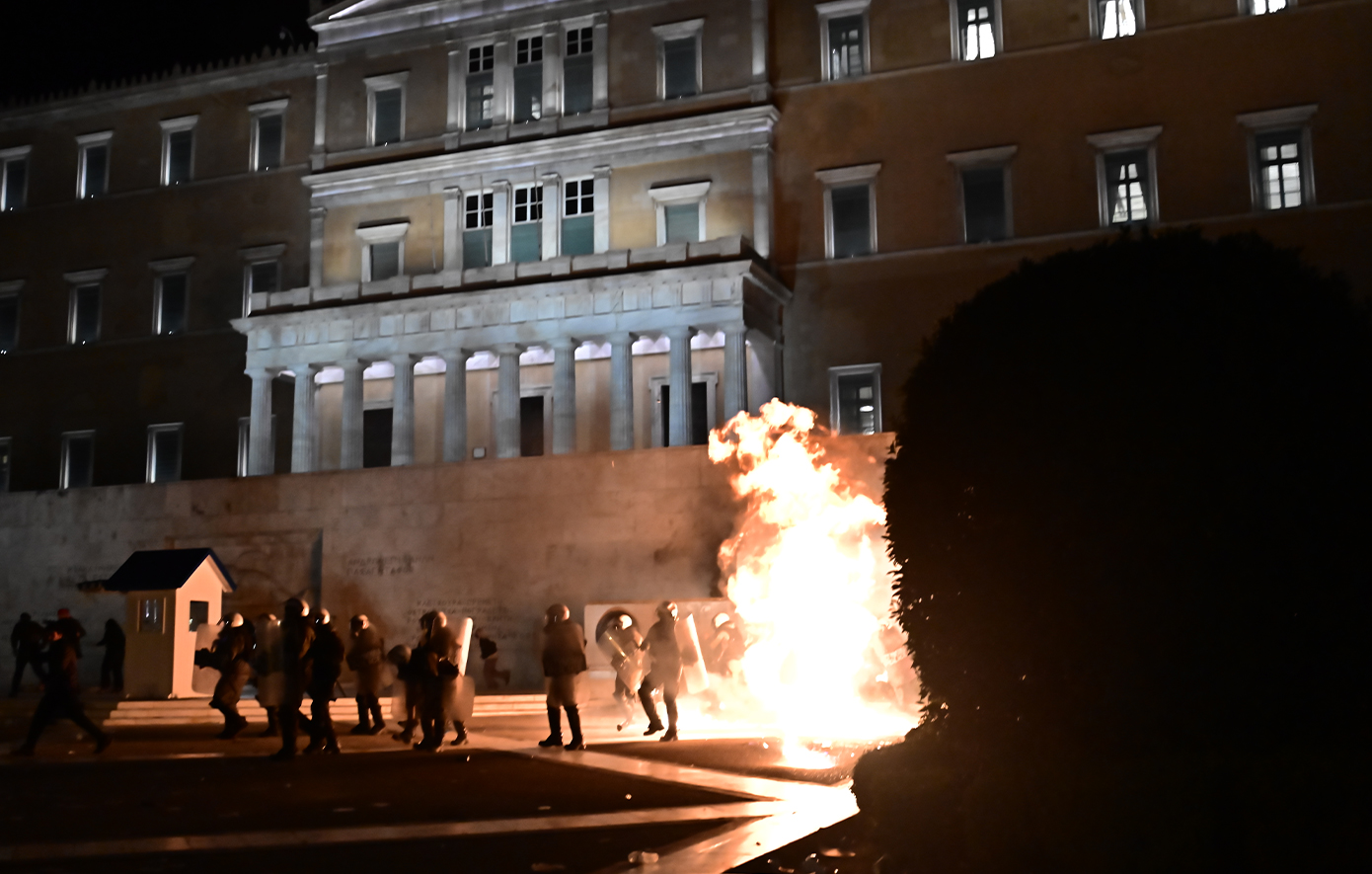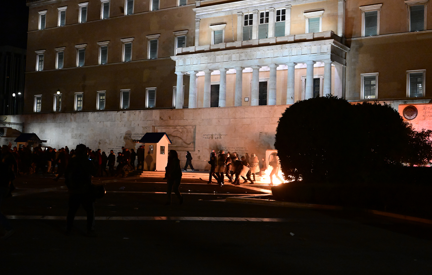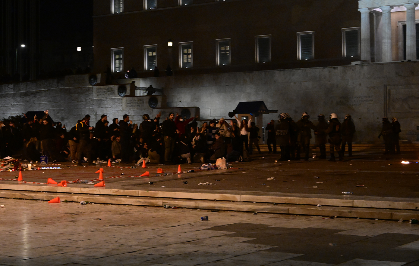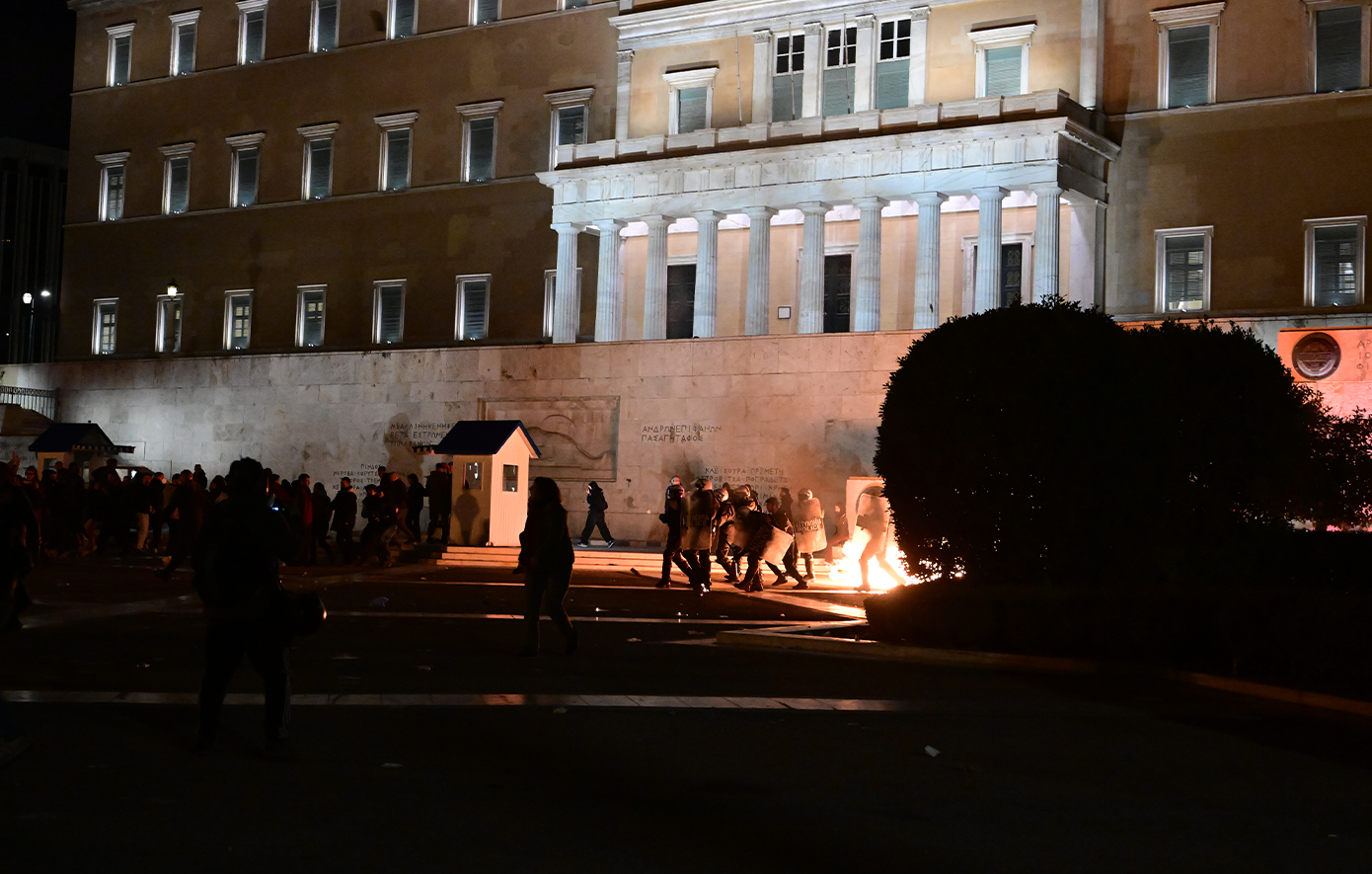 Επεισόδια σημειώθηκαν σε Σύνταγμα και Θεσσαλονίκη μετά τις νέες πορείες που έγιναν για την τραγωδία των Τεμπών.