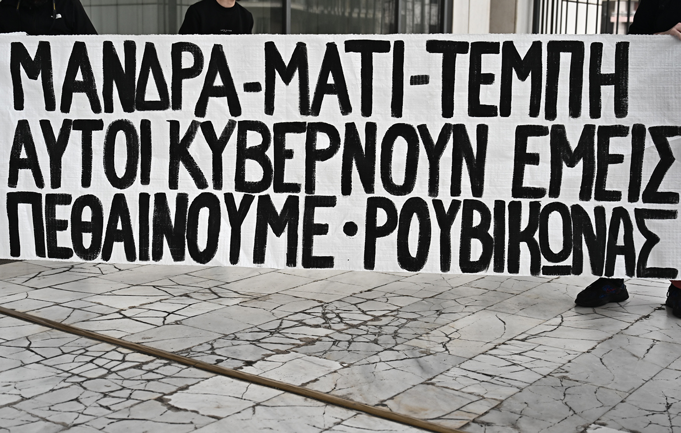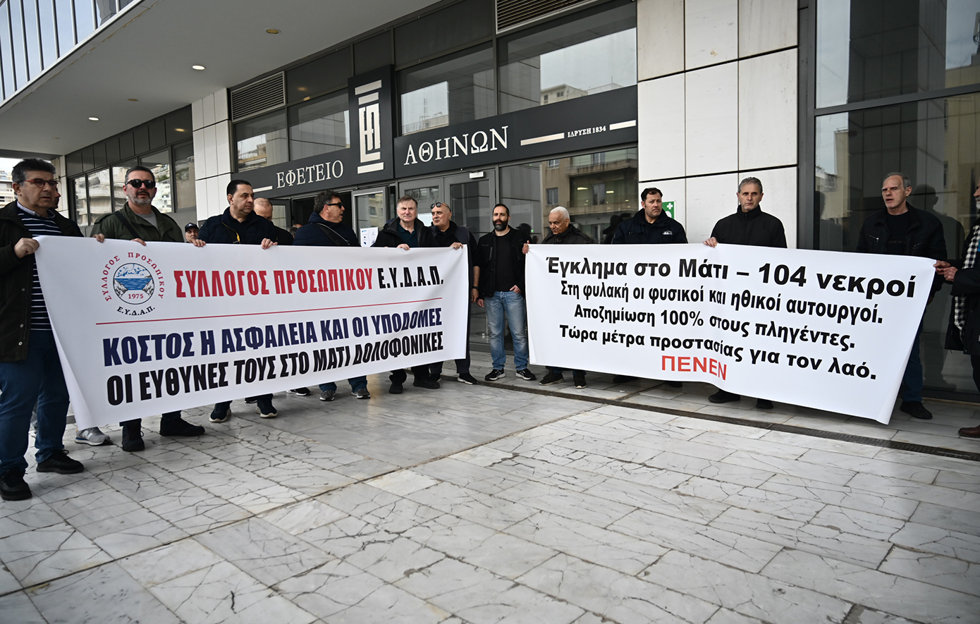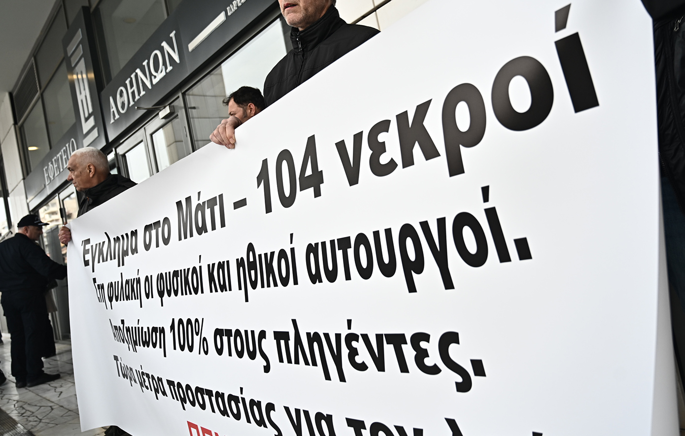 Έξω από το Εφετείο, λίγο πριν ξεκινήσει η εισαγγελική αγόρευση, συγγενείς των θυμάτων κράτησαν πλακάτ με τα οποία σχημάτισαν τις λέξεις «κακούργημα» και «δικαιοσύνη». Στην είσοδο του Εφετείου αναρτήθηκε πανό με τη φράση «Η δικαιοσύνη δεν μπορεί να είναι επιλεκτική» θυμίζοντας τους 104 ανθρώπους που έχασαν τη ζωή τους και τους 57 που τραυματίστηκαν στη φονική πυρκαγιά.