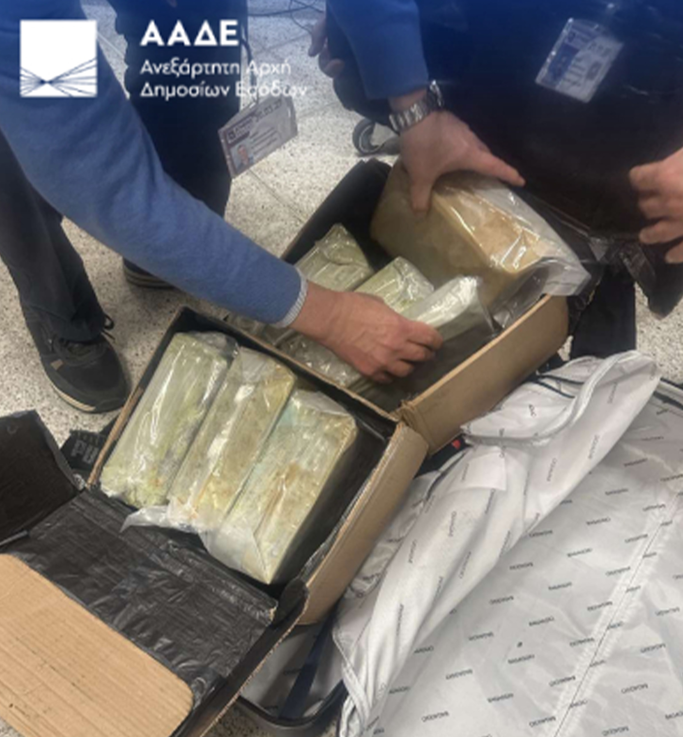 Οι ελεγκτές της ΑΑΔΕ εντόπισαν στον Αερολιμένα Αθηνών «Ελευθέριος Βενιζέλος» έναν επιβάτη, που μετέφερε 17 κιλά κοκαΐνης.