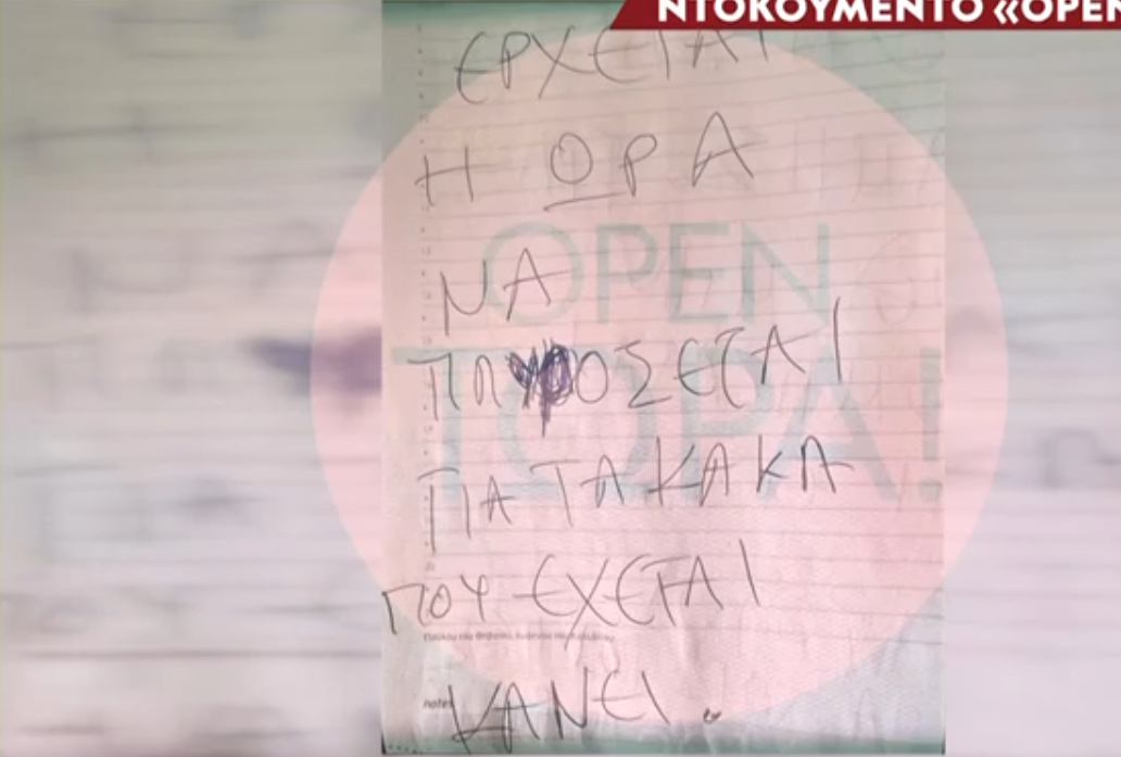 Το Open φέρνει στο «φως» της δημοσιότητας ένα από τα χειρόγραφα σημειώματα που είχε αφήσει ο δράστης της αιματηρής επίθεσης.